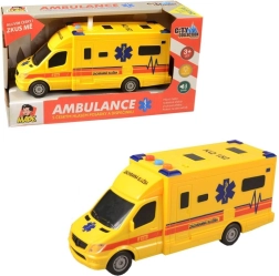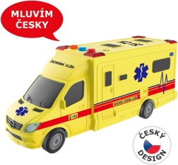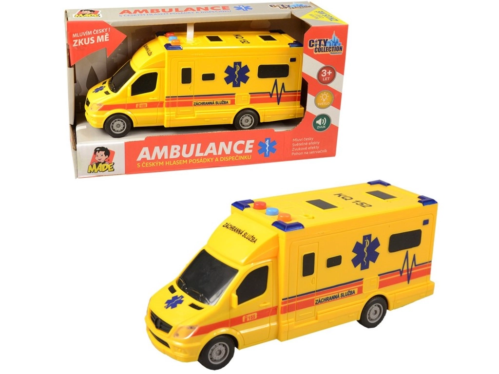 Reālistiska bērnu ātrās palīdzības mašīna ar inerces piedziņu ar gaismas efektiem, bākugunis skaņu un dispečera un ekipāžas balss paziņojumiem. Plastmasas izpildījums, izmērs apmēram 19 cm, lieliski piemērota zēniem un meitenēm no 3 gadu vecuma.