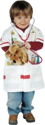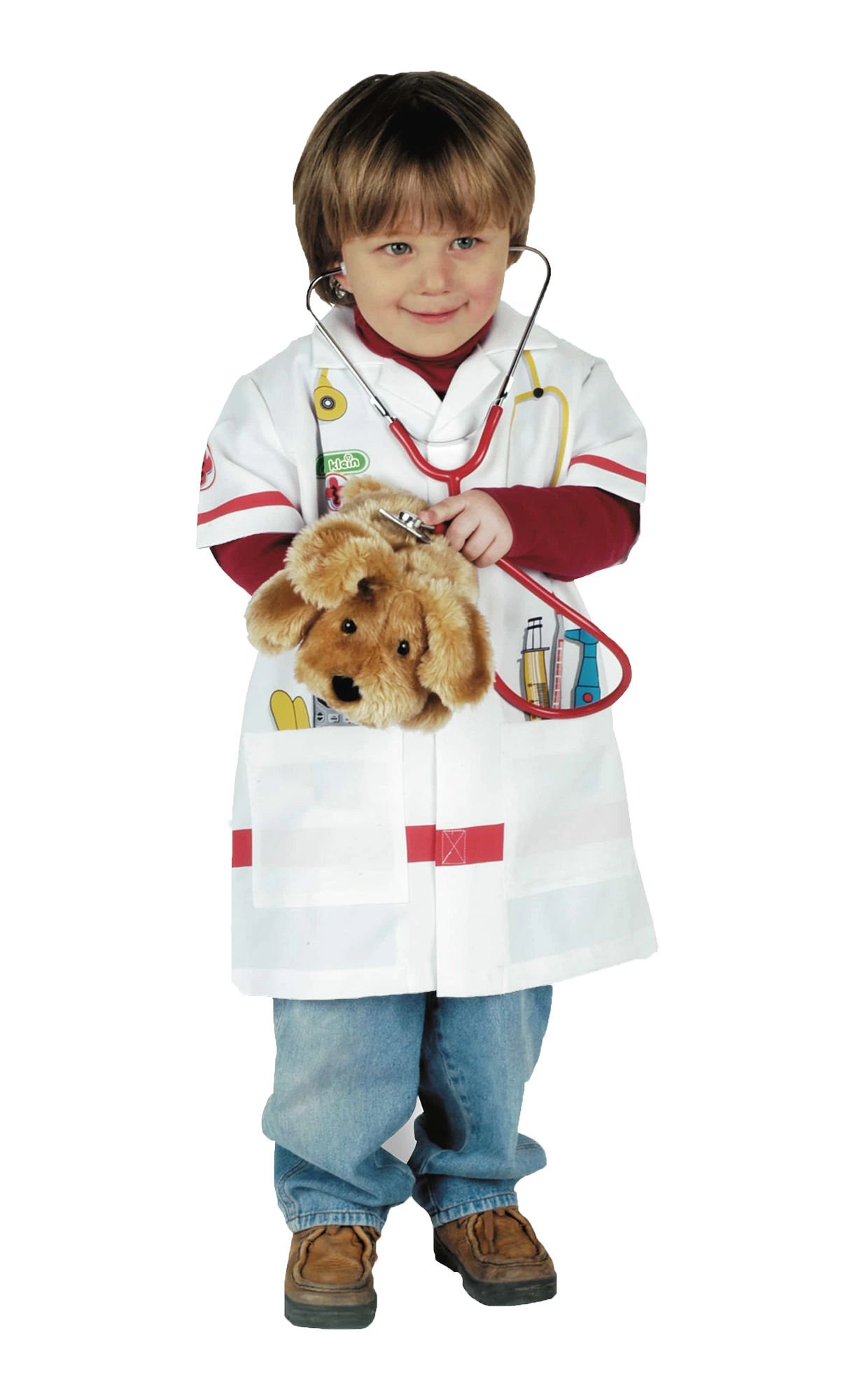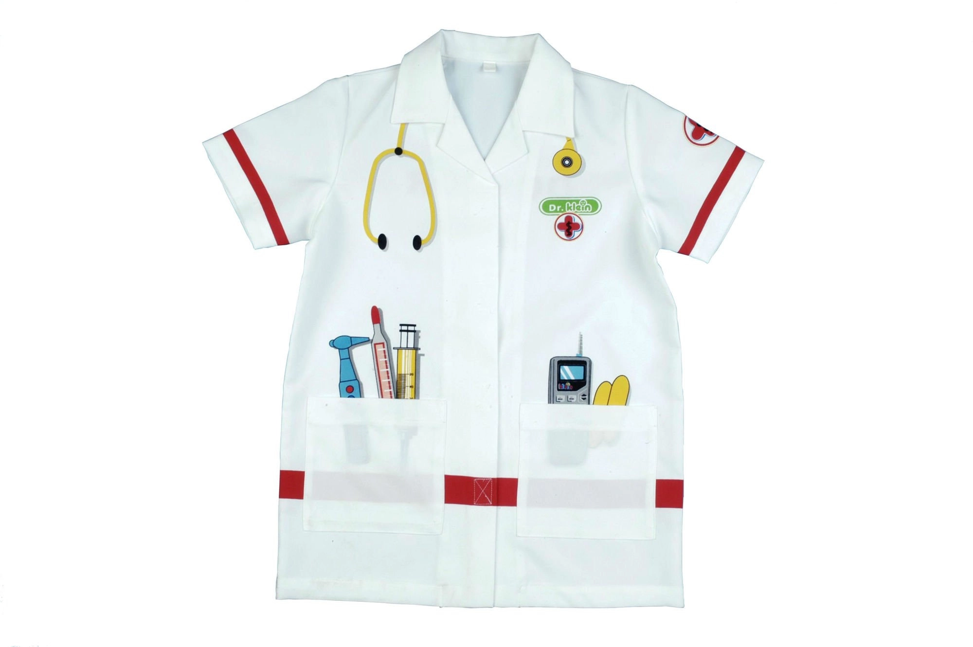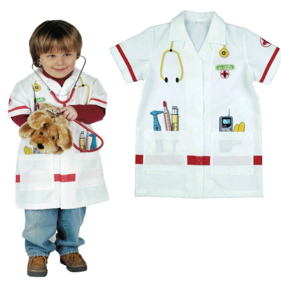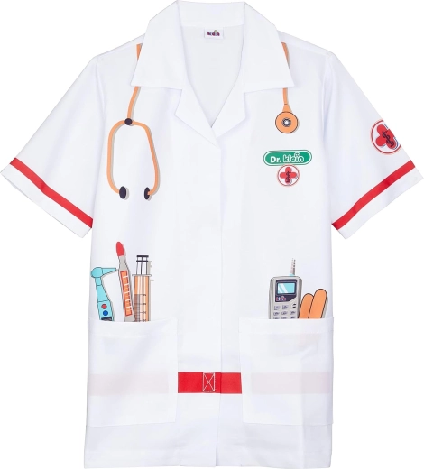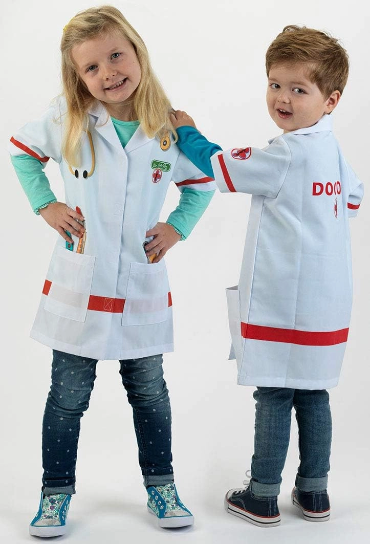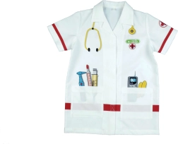 Universāls dizains der gan meitenēm, gan zēniem, un, pateicoties pārdomātiem izmēriem, lieliski pieguļ bērniem vecumā no 3 līdz 5 gadiem. Divas lielas kabatas ietilpina sīkus piederumus ārsta spēlei, lai viss būtu pa rokai.