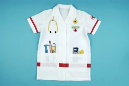 Stetoskops, termometrs, šļirce un citi motīvi veicina reālistisku ārsta lomu spēli un attīsta bērnu iztēli.