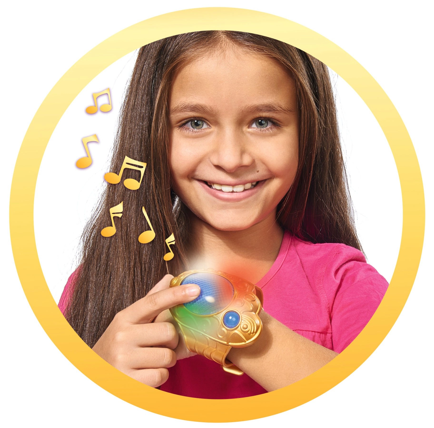 Atklāj burvību kā Mia! Stilīgā aproce elegantā zeltainā krāsā ar ikonisko zilo akmeni ļauj atkārtoti izdzīvot iemīļotas ainas no seriāla Mia un es. Nospiežot akmeni, aproce iedegas daudzkrāsainās gaismās un atskan pazīstamā melodija – prieks un burvība rokas stiepiena attālumā.