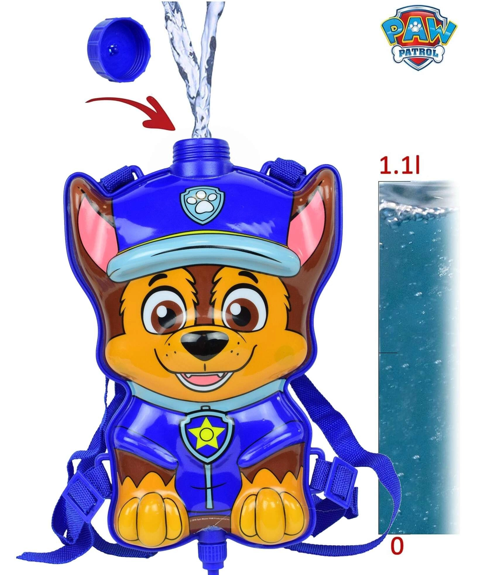 Šī bērnu ūdens mugursoma ar iemīļotā varoņa Chase no multfilmas Paw Patrol tēlu pārvērtīs katru saulainu dienu aizraujošā ūdens kaujā. Tvertni piepilda ar ūdeni caur aizveramu uzpildes atveri, pēc tam, izmantojot caurulīti un roku pumpi, var izšaut ūdens strūklu. Pateicoties regulējamām lencēm, mugursoma ērti der bērniem ar dažādu augumu.