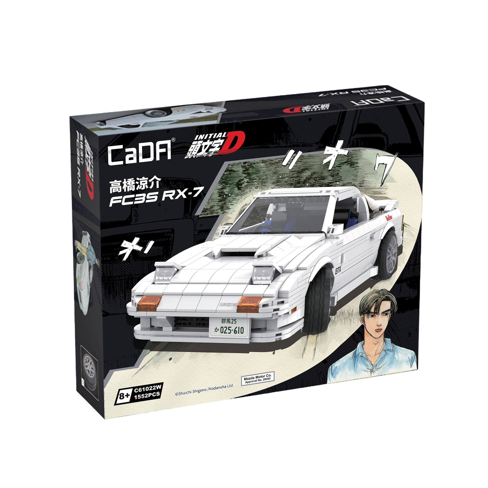 Uzbūvē ikonisko MAZDA RX-7 no sērijas INITIAL D no zīmola CaDA. Komplektā ar 1552 detaļām ir reālistiska balta virsbūve, atveramas durvis, pārsegs, bagāžnieks un lukturi, funkcionāla stūrēšana un neatkarīgā piekare. Ļoti detalizēts interjers un iespēja papildu aprīkot ar RC piedziņu nodrošina lielisku būvēšanas un izstādīšanas pieredzi.