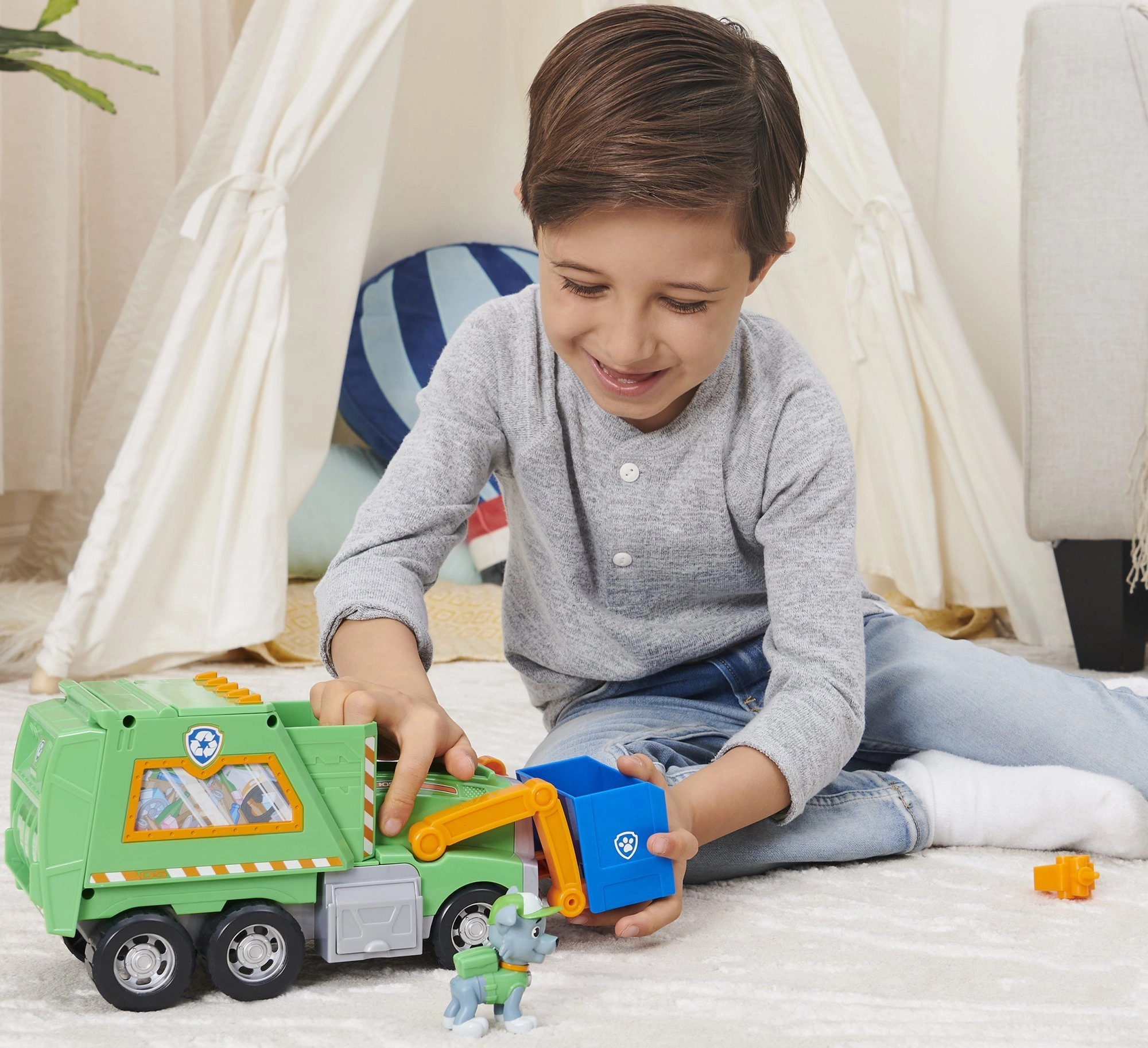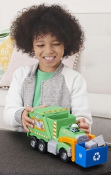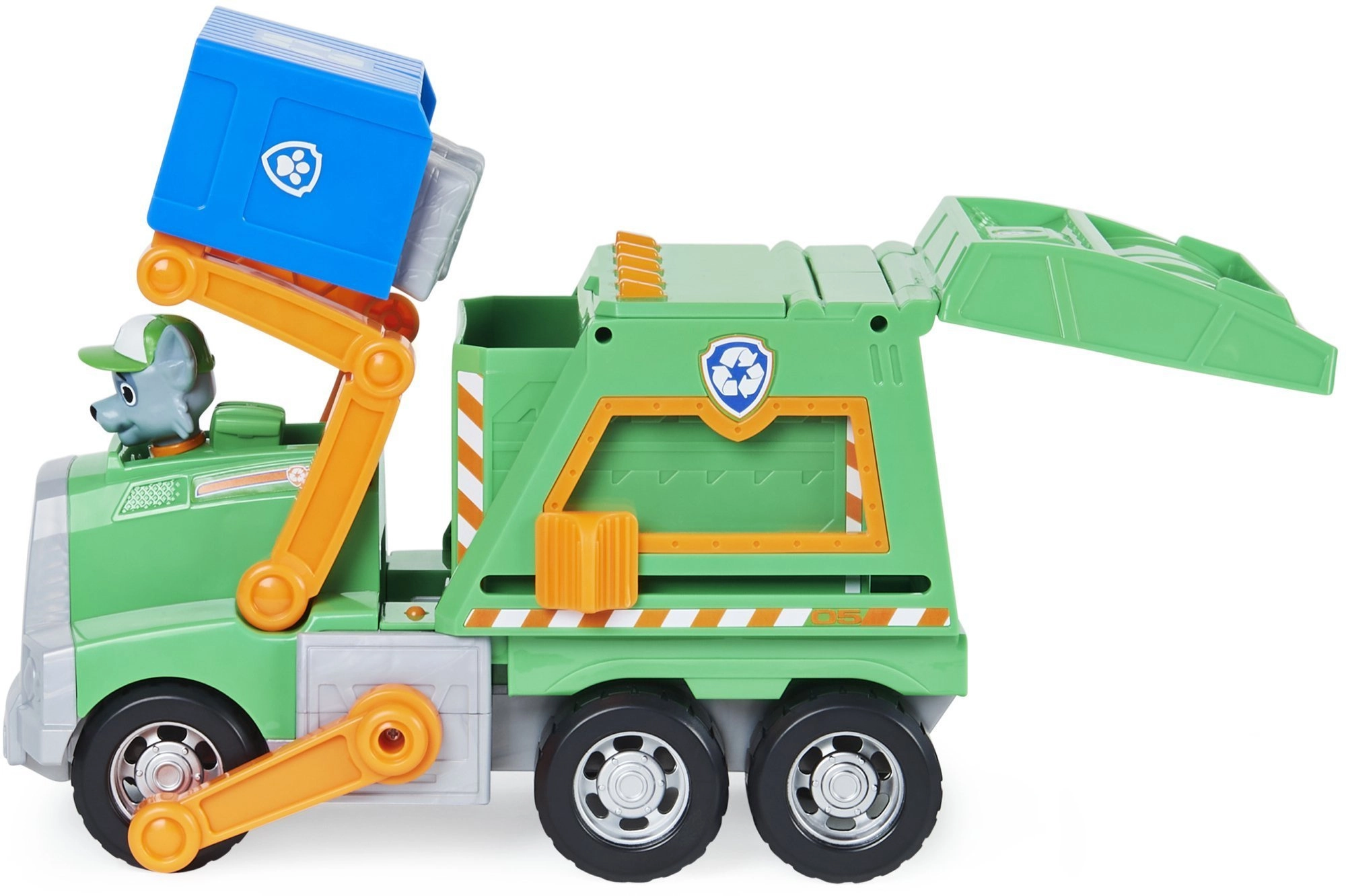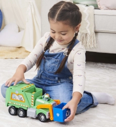 Dodies glābšanas misijā par tīrāku pilsētu kopā ar Rocky un viņa zaļo pārstrādes auto. Bērni var celt zilo grozu, iekraut “atkritumus” un mācīties šķirošanu. Autentiskas detaļas no seriāla Paw Patrol veicina iztēli un sižetisku spēli.