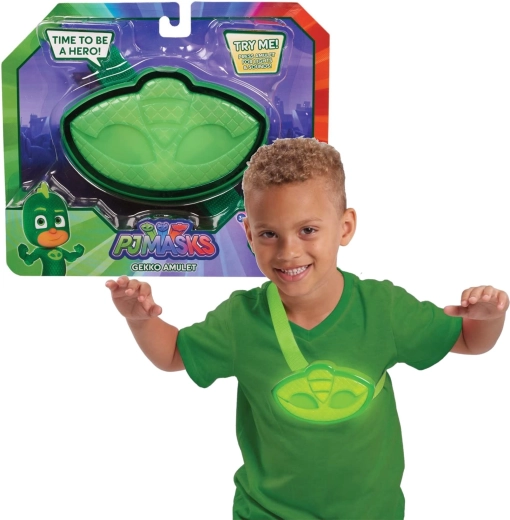 Zaļais Gekko amulets no iemīļotā seriāla PJ Masks iepriecinās katru bērna dienu. Nospiežot pogu, tas spīd un atskaņo melodiju, komplektā ir regulējama siksna nēsāšanai uz krūtīm. Piemērots no 3 gadiem, angļu valodas versija, iekļautas testa baterijas.