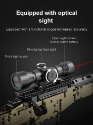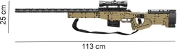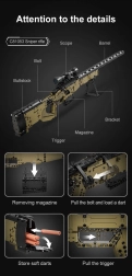 Šis detalizētais konstruktors no DOUBLE EAGLE/CADA zīmola sniedz aizraujošu projektu vecākiem bērniem un pusaudžiem. Jūs saliksiet iespaidīgu snaipera šautenes modeli SNIPER RIFLE ar daudziem kustīgiem elementiem, tostarp aptveri un tēmēšanas optiku. Pateicoties iekļautajai siksnai, modeli ir viegli pārnēsāt.