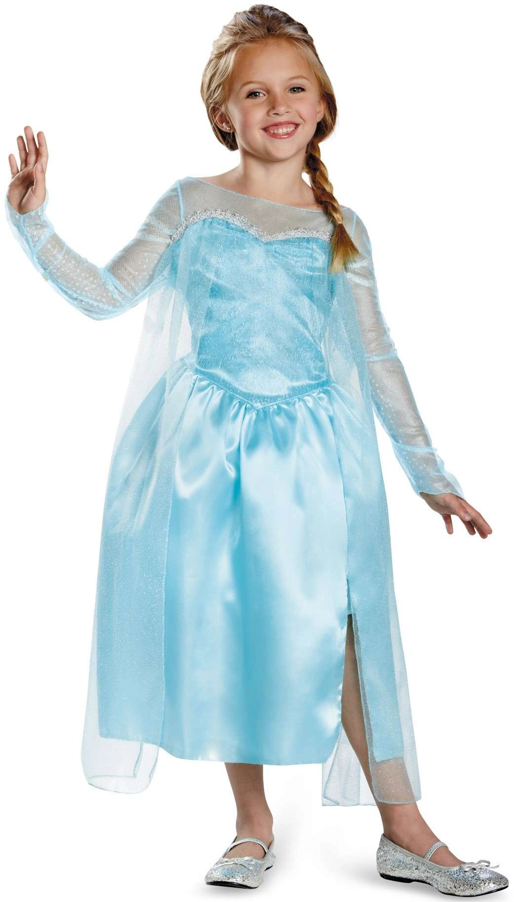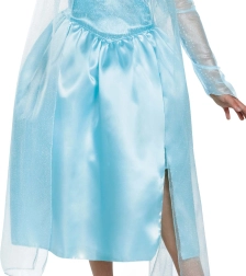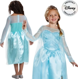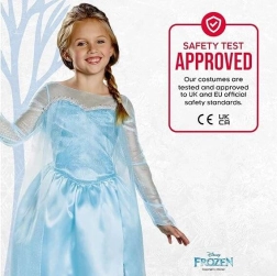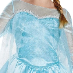 No pasakas DISNEY Frozen iedvesmotais kostīms pārvērtīs ikvienu meitenīti iemīļotajā princesē Elzā. Kleita ar garām piedurknēm ir izgatavota no vieglas, spīdīgas un patīkamas materiāla, kas nodrošina komfortu visas dienas garumā. Mirdzošie elementi un krāsu salikums zilā un sudrabā piešķir autentisku izskatu.