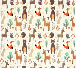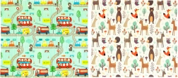 Divi izglītojoši zīmējumi veicina iztēli un mācīšanos: mīlīgi meža dzīvnieciņi un košas ieliņas uz tirkīza fona.