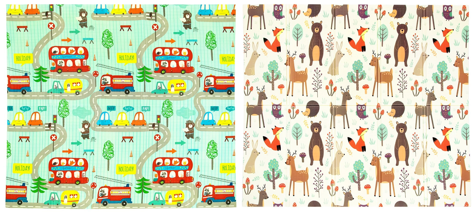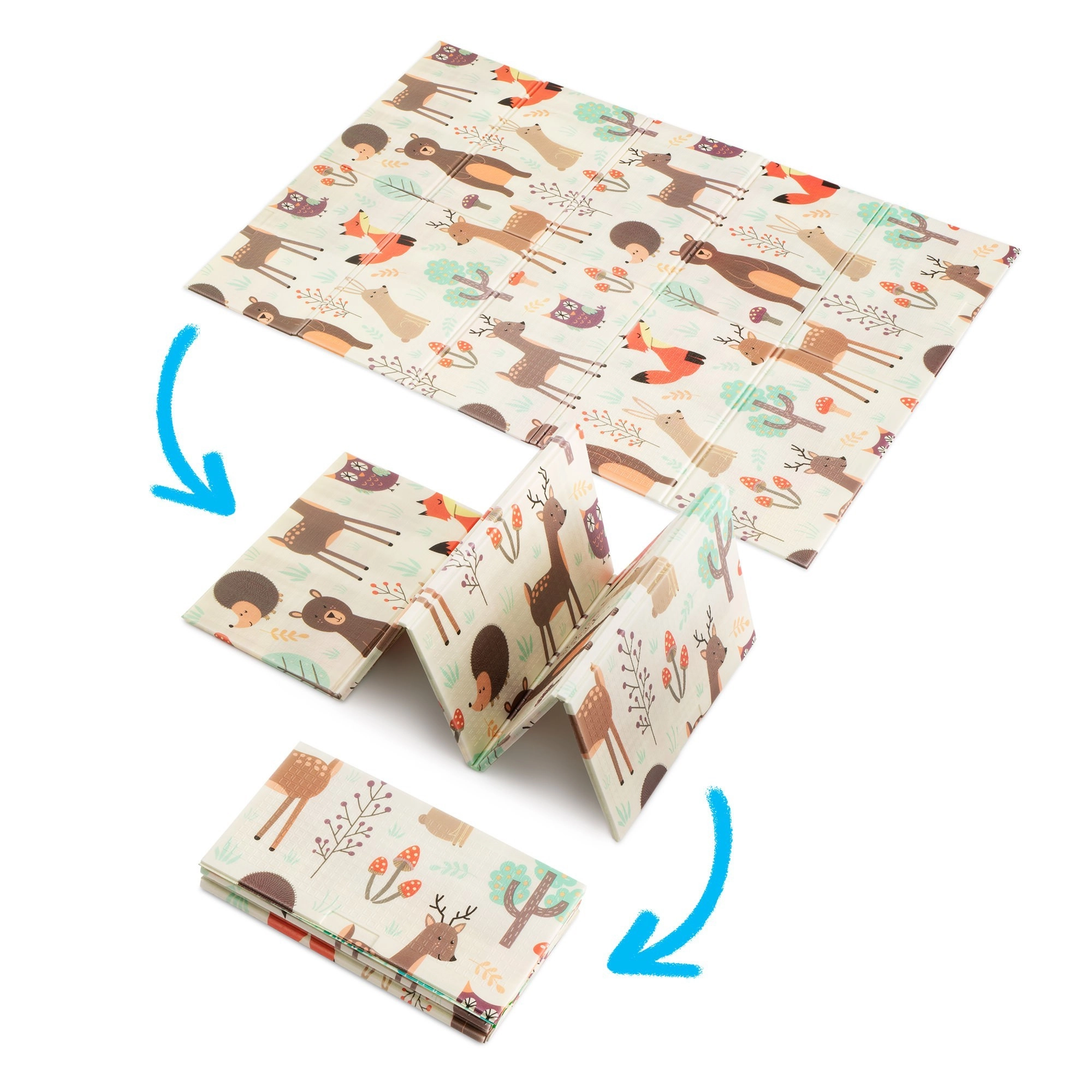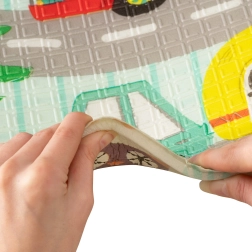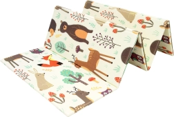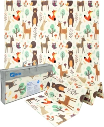Pakalājiņš ir abpusējs: vienā pusē maigi meža dzīvnieciņu motīvi, otrā – jautras krāsainas ieliņas. To viegli salocīt līdz kompaktam izmēram, tas ir viegls, un soma ar rāvējslēdzēju un rokturiem ļauj to ērti paņemt uz viesistabu, bērnistabu, dārzu vai pikniku. Ūdensizturīgo virsmu pietiek noslaucīt ar mitru drāniņu – higiēnisks risinājums, piemērots arī alerģiskiem bērniem.