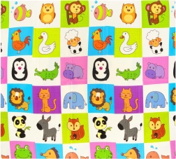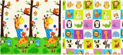 Vienā pusē mīlīgas žirafes, otrā — krāsaina dzīvnieciņu mozaīka. Veicina vizuālo uztveri un piešķir interjeram rotaļīgu noskaņu.