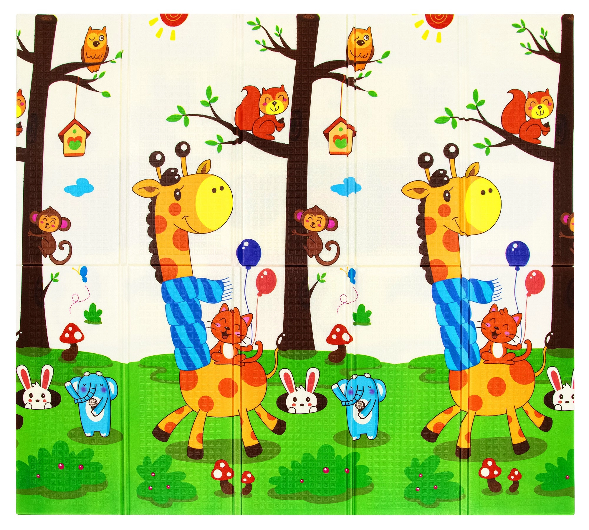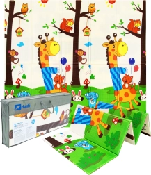 Premium XPE putas nodrošina HUMBI paklājiņam lielisku triecienu slāpēšanu, siltumizolāciju no aukstas grīdas un ilgu kalpošanas laiku. Divpusējs dizains ar žirafēm un dzīvnieciņu režģi veicina sensoro attīstību un padara paklājiņu par skaistu akcentu bērnu istabā vai viesistabā.