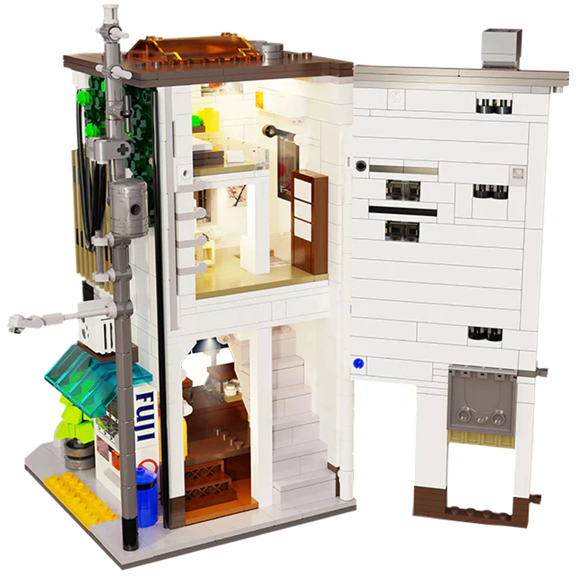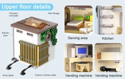 Atveramā sānsiena atklāj detalizēti aprīkotas telpas – no pārdošanas letes un dzērienu automāta līdz kāpnēm un mājīgai guļamistabai ar datoru, gultu, skapi un kondicionieri. Ārējās detaļas, piemēram, elektrības stabs, ventilācijas kanāls, logi, notekcaurule, kondicionieris, izkārtne un ēdienkarte, uzsver modeļa kolekcionāra raksturu.