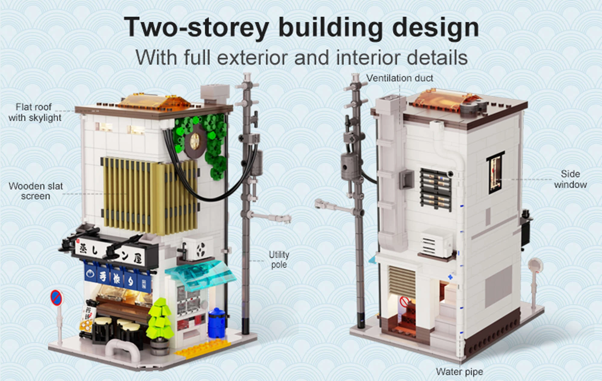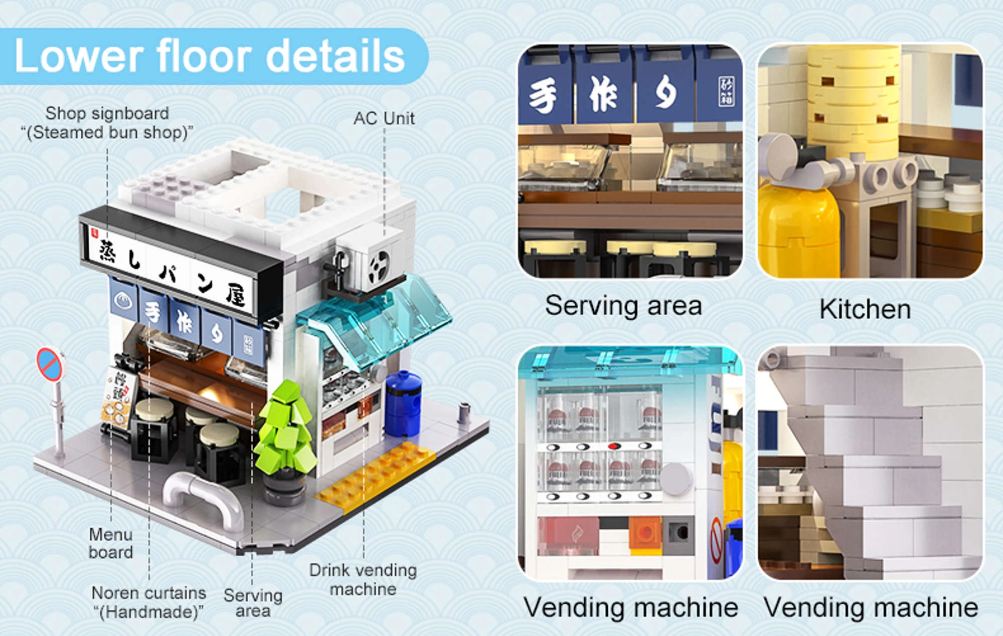 Šis elegantais CaDA komplekts ienes autentisku japāņu ieliņu atmosfēru. Divstāvu tvaicēto maizīšu veikals izceļas ar reālistisku fasādi, funkcijām ērtai piekļuvei interjeram un LED moduli, kas piešķir modelim unikālu vakara noskaņu.
