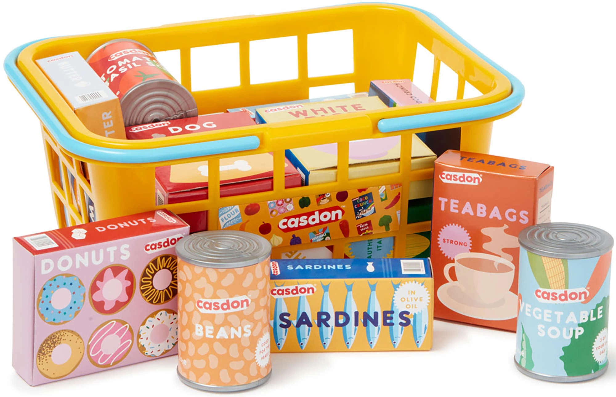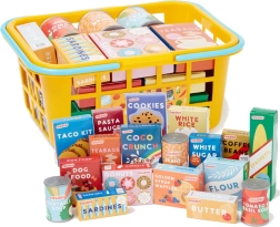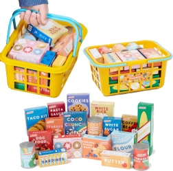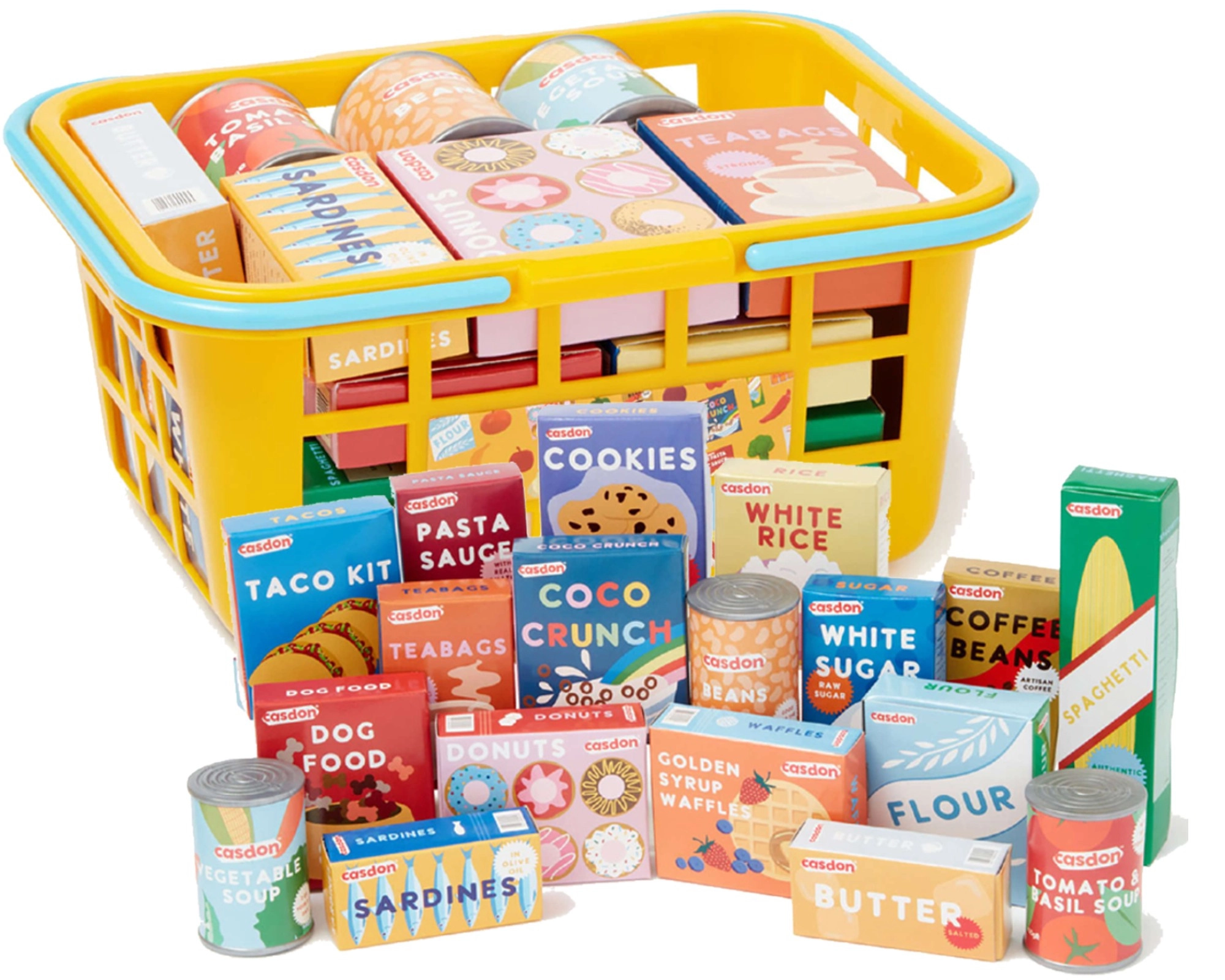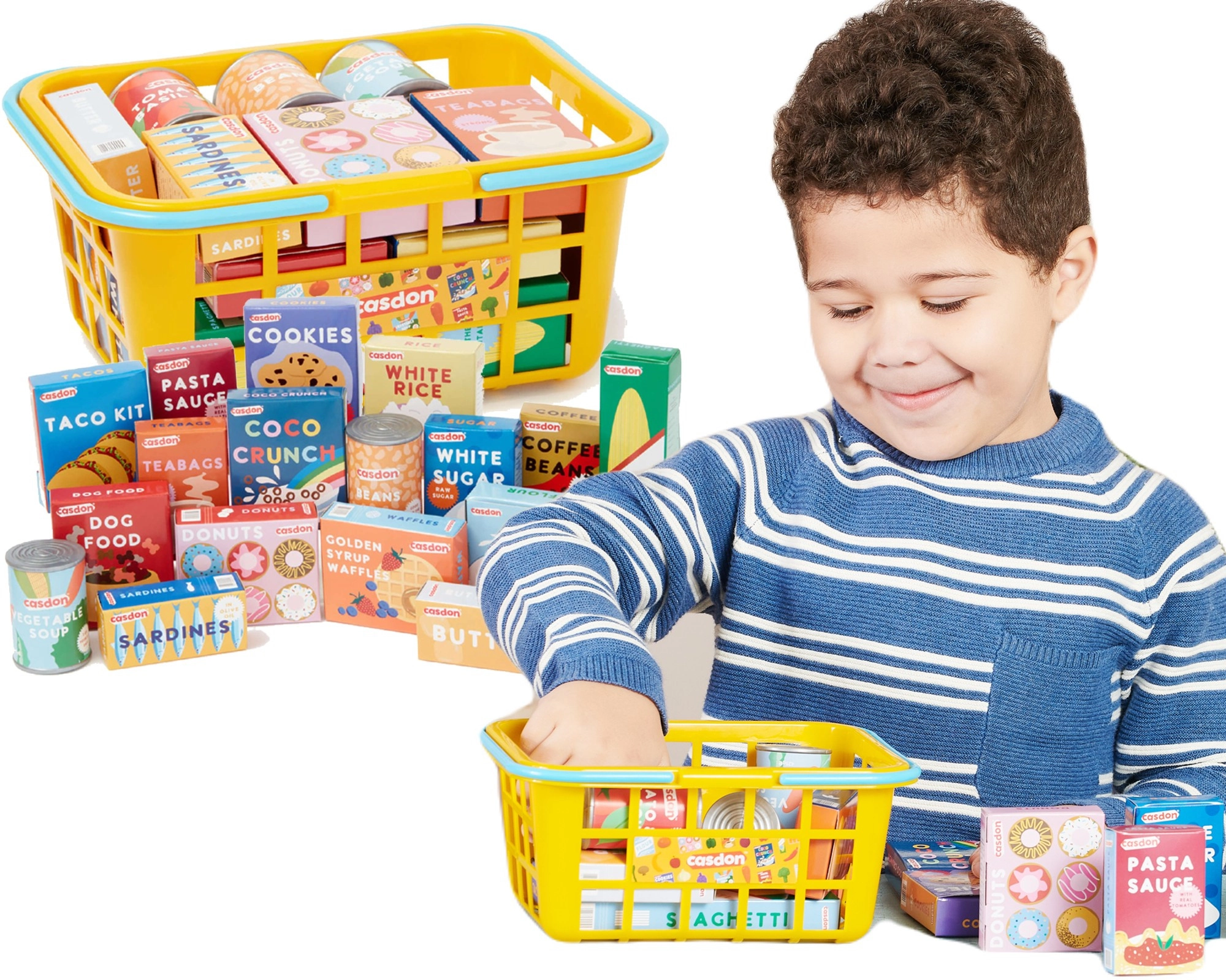Šis kvalitatīvais komplekts no zīmola CASDON ir radīts mazajiem veikala spēļu cienītājiem. Grozs ir viegls, izturīgs un drošs bērnu rokām, izmēros pielāgots bērniem. Iekšpusē atradīsiet daudzveidīgu reālistiski apdrukātu kastīšu un skārdeņu klāstu, kas veicina iztēli un komunikācijas prasmes.