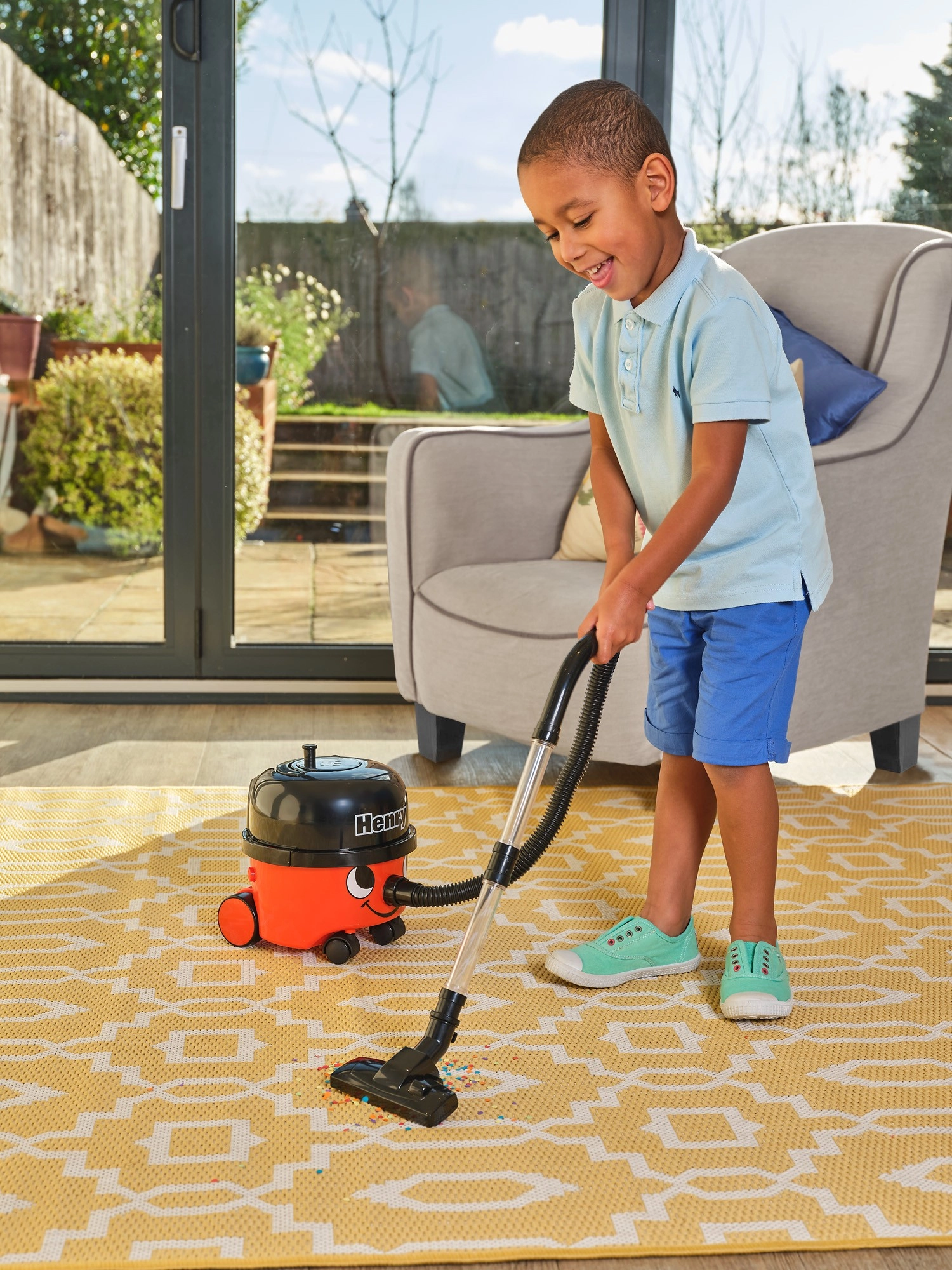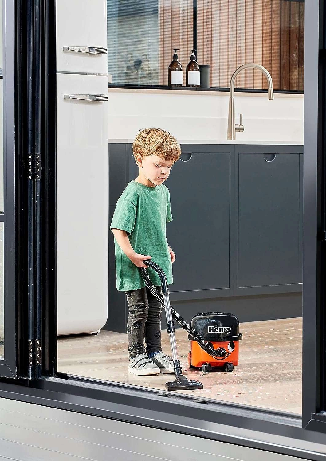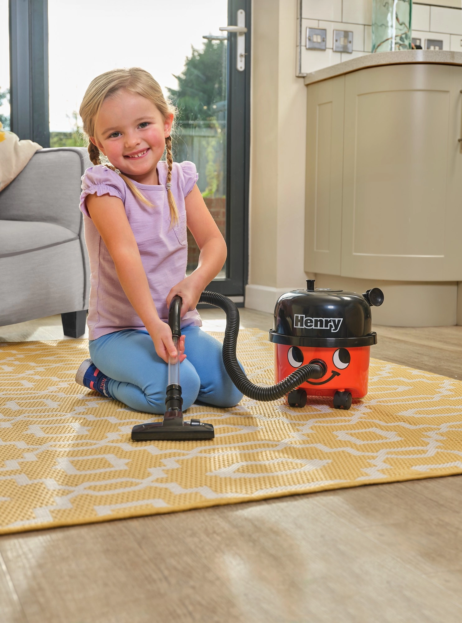 Iemīļotais HENRY bērnu versijā pārvērš uzkopšanu jautrā nodarbē. Reālistisks dizains ar smaidīgu sejiņu, četriem ritenīšiem un caurspīdīgu cauruli sajūsminās mazos palīgus. Putekļsūcējs patiešām iesūc sīkus un vieglus netīrumus (piem., konfeti vai putuplasta bumbiņas) un vienlaikus ir maigs un drošs jau no 3 gadu vecuma.