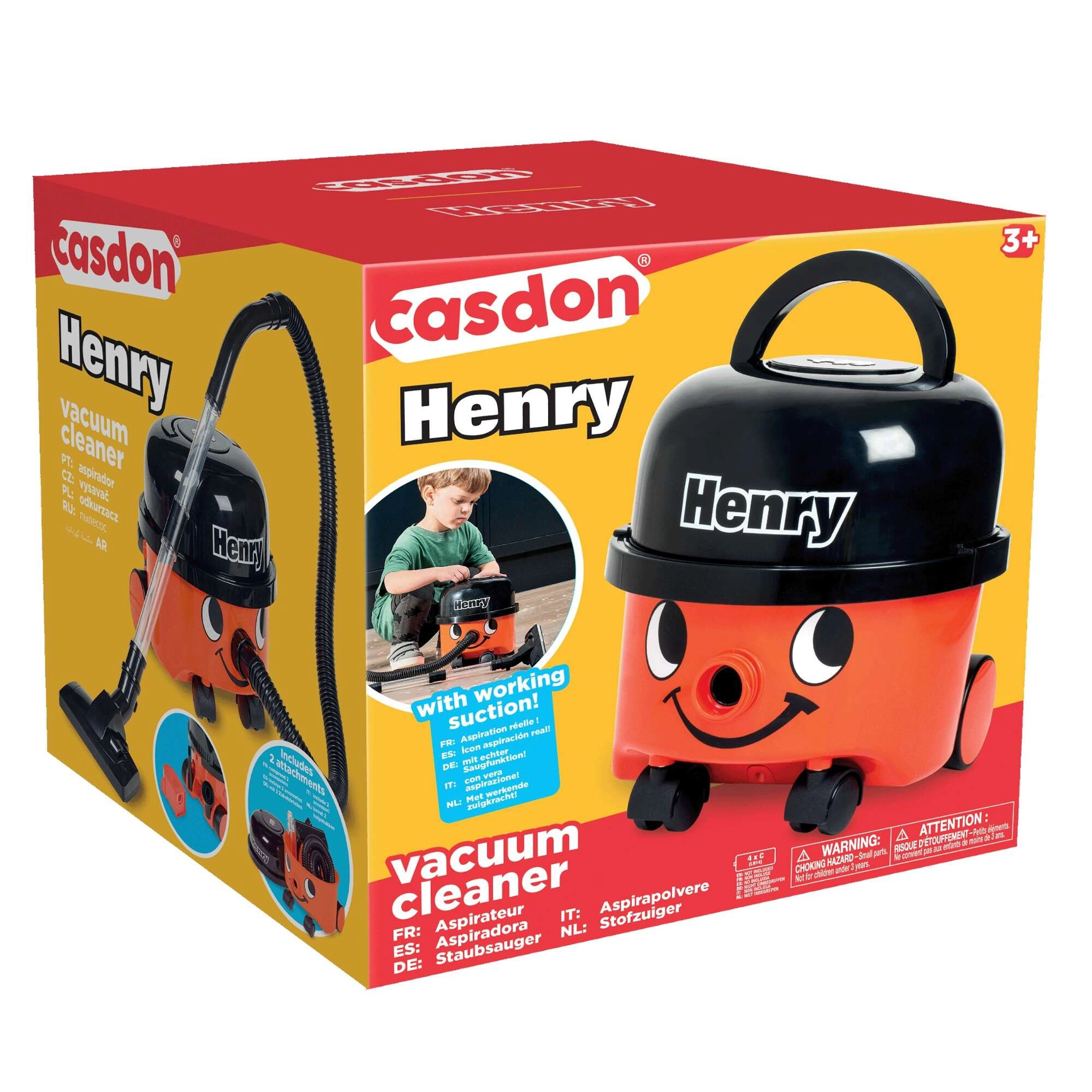 Aizraujošais bērnu putekļsūcējs HENRY no Casdon piedāvā reālistisku uzkopšanas rotaļu ar drošu sūkšanas funkciju, caurspīdīgu šļūteni un piederumu glabāšanas nodalījumu. Pateicoties klusai darbībai, grozāmiem ritenīšiem un vieglai konstrukcijai ar rokturi, tas veicina bērnu patstāvību un attīsta motoriku.