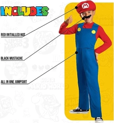 Kļūstiet par leģendāro varoni SUPER MARIO! Šis oficiāli licencētais Disguise kostīms piedāvā autentiskas detaļas, komfortu un izturību ikdienas rotaļām un lieliem karnevāla pasākumiem. Pateicoties vieglajam materiālam, to ir viegli uzvilkt, un tas lieliski pieguļ.