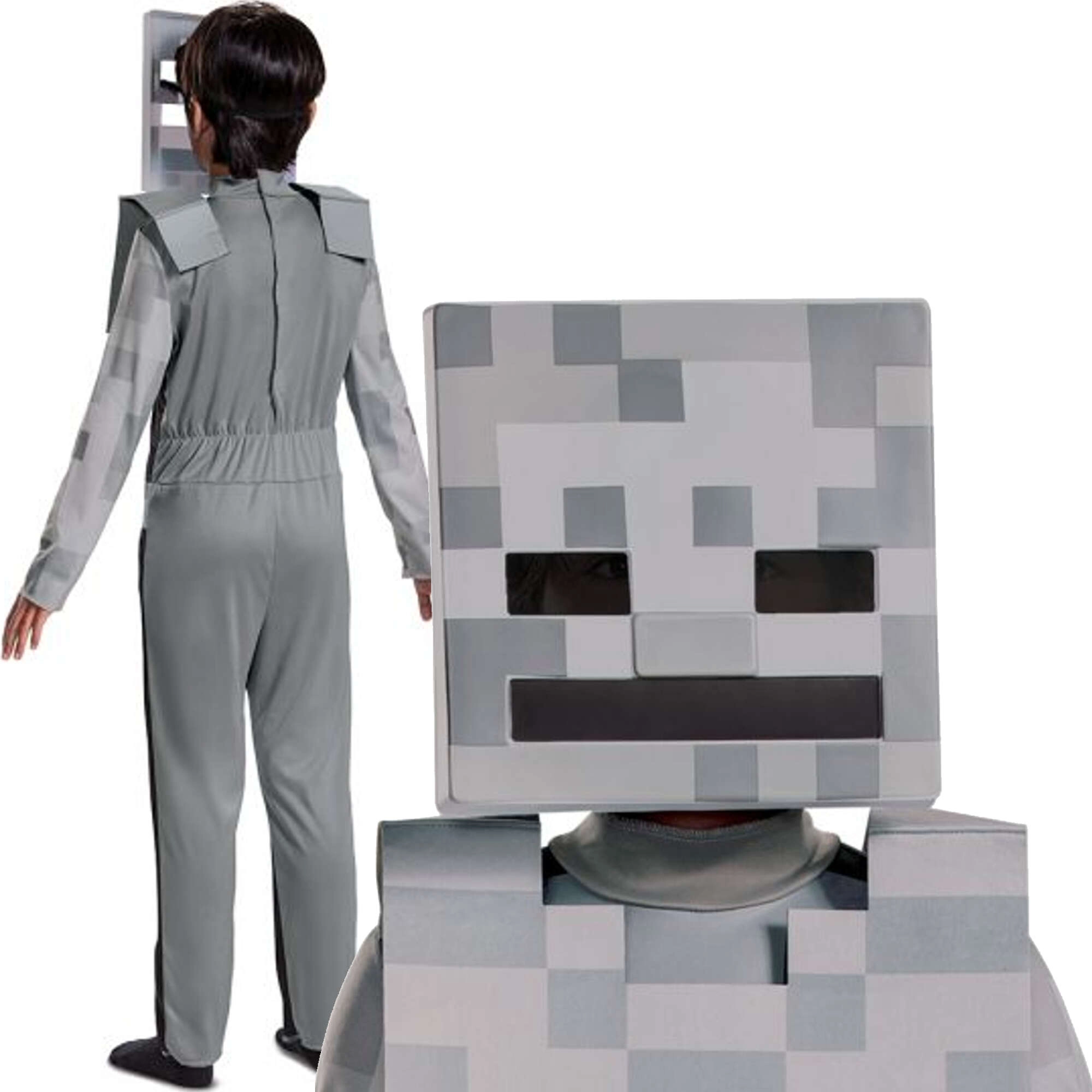 Ieģērbiet mazo fanātu MINECRAFT pasaulē – bērnu kostīms Skelets ar raksturīgu pikseļu dizainu un ērtu piegriezumu. Ideāli piemērots masku ballēm, skolas pasākumiem un rotaļām mājās. Viegls 100% poliestera materiāls nodrošina komfortu, komplektā ir kombinezons un galvas daļa.