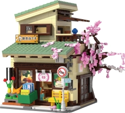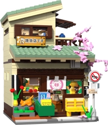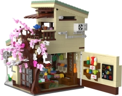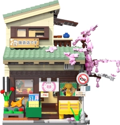 Šis augstākās kvalitātes komplekts ienes autentisku japāņu pilsētas noskaņu. Unikālā atveramā konstrukcija ļauj viegli ielūkoties iekšpusē un novērtēt rūpīgi izstrādātās detaļas – no letes ar precēm līdz mierīgam balkonam ar sakuras kociņu un dīķi ar koi karpām. LED gaismas (8 efekti) piešķir modelim patīkamu vakara atmosfēru.