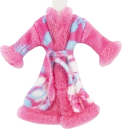 Halātiņam ir apdare no maigas mākslīgās kažokādas, ērts piegriezums ar platākām piedurknēm un tas der parasta izmēra vidēja lieluma lellēm. Lielisks papildinājums bērnu istabai, kas veicina fantāziju un lomu spēles.