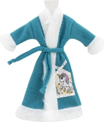 Stilīgs leļļu halātiņš ar samtaini maigu virsmu un sējamu jostu sasilda pēc vannas un vakara rituālu laikā. Pieejams dažādu krāsu un motīvu miksā (piem., vienradzis), viegli kombinējams ar citiem apģērbiem.