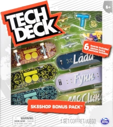 Saliec savus fingerbordus ar ikonisko TECH DECK Bonus Pack komplektu no zīmola Spin Master. Iepakojumā atradīsi 6 skrituļdēļu dekas, tostarp pilnībā samontētu fingerbordu, trekus, riteņus, skrūves, uzgriežņus, gripu, instrumentus un uzlīmes. Lieliski piemērots pirkstu triku treniņiem, koordinācijas attīstīšanai un daudzām izklaides stundām bērniem no 6 gadu vecuma.