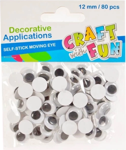 Veidojiet oriģinālas dekorācijas un jautrus projektus ar šīm kustīgajām pašlīmējošajām acīm. Iepakojumā ir 80 gab. acu ar kustīgām melnām zīlītēm, ideāli piemērotas rokdarbiem, skreidgrāmatu veidošanai (scrapbooking) un citām rūpnieciskām un radošām aktivitātēm. Piemērotas bērniem no 3 gadu vecuma.