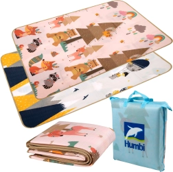 HUMBI paklājiņš pārvērš jebkuru istabu mājīgā un drošā rotaļu vietā. Pateicoties izmēriem 150 × 180 cm, tas nodrošina bērniem daudz vietas, kamēr 0,5 cm biezās EPE putas amortizē triecienus un pasargā no aukstuma. Divpusējā druka košās krāsās veicina uztveri, redzes uzmanību un pirmo skaitļu apguvi, kā arī apkārtējās pasaules vērošanu.