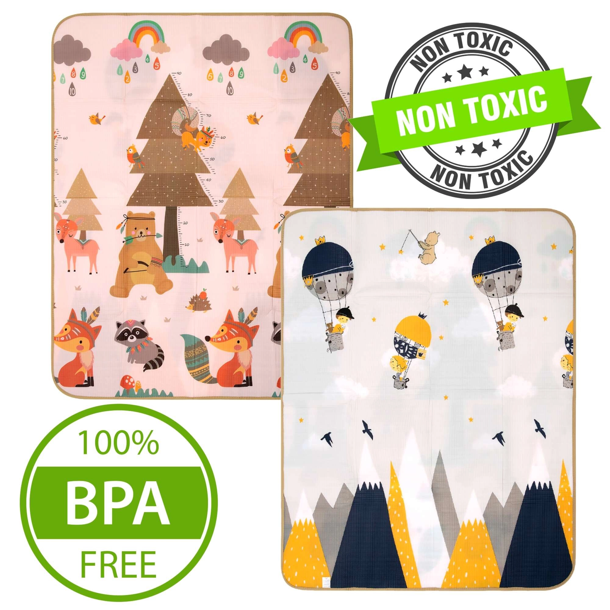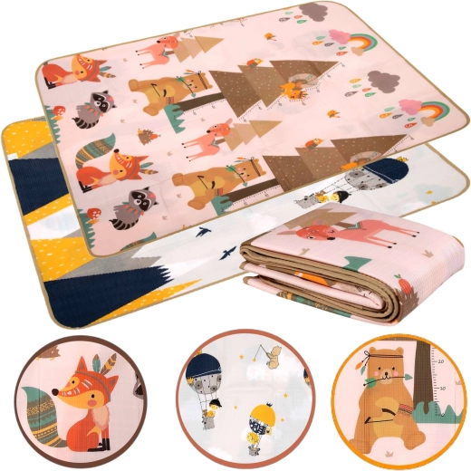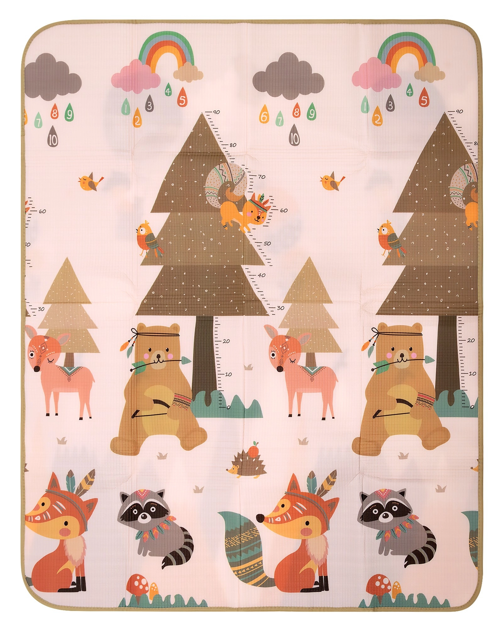 - Divpusējs 2 vienā dizains – dzīvnieciņi, kalni, baloni un auguma mērlenta