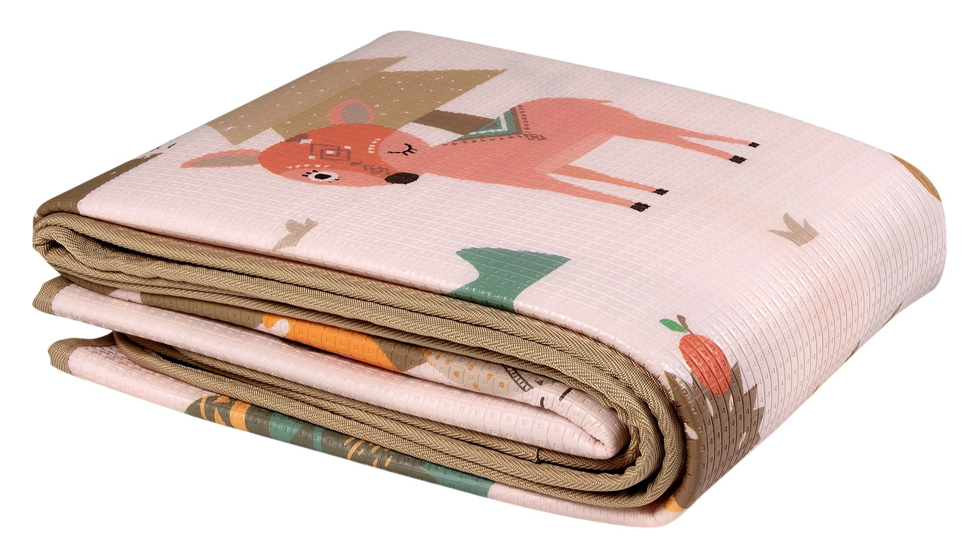 Praktiskais materiāls ir ūdensnecaurlaidīgs un viegli tīrāms – pietiek noslaucīt ar mitru drāniņu. Paklājiņu var izmantot iekštelpās un uz gludām āra virsmām. Pēc salocīšanas tas aizņem minimumu vietas, tāpēc to viegli novietot zem gultiņas vai starp mēbelēm. Komplektā iekļauta pārvadāšanas soma ar rāvējslēdzēju un rokturiem tīrai un ērtai pārnēsāšanai.