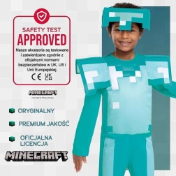 Šis oficiāli licencētais MINECRAFT dimanta bruņu kostīms pārvērtīs bērnus par viņu iemīļotās spēles varoņiem. Mīkstu pikseļu raksta kombinezonu un izteiksmīgus plecu paneļus papildina viegla ķivere, kas piešķir kostīmam ikonisku izskatu. Pateicoties patīkamiem materiāliem, kostīms ir ērts arī ilgākā valkāšanā.