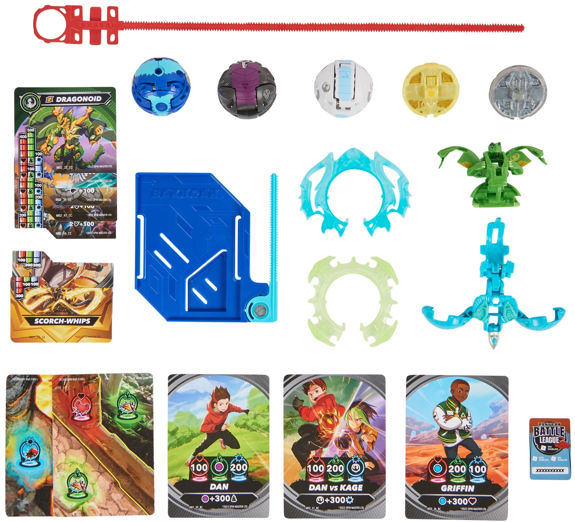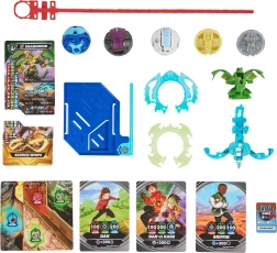 Iepakojumā atradīsiet Bakugan bumbas, Special Attack detaļas, cīnītāju un spēju kārtis, Gate kārtis un uzglabāšanas turētāju – viss, lai uzreiz sāktu spēli.