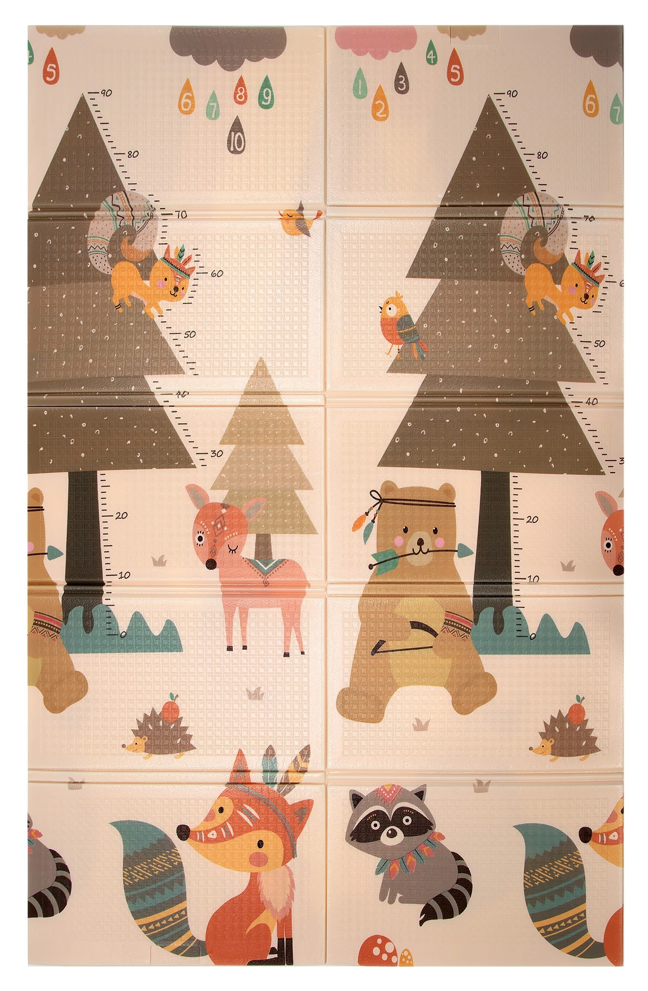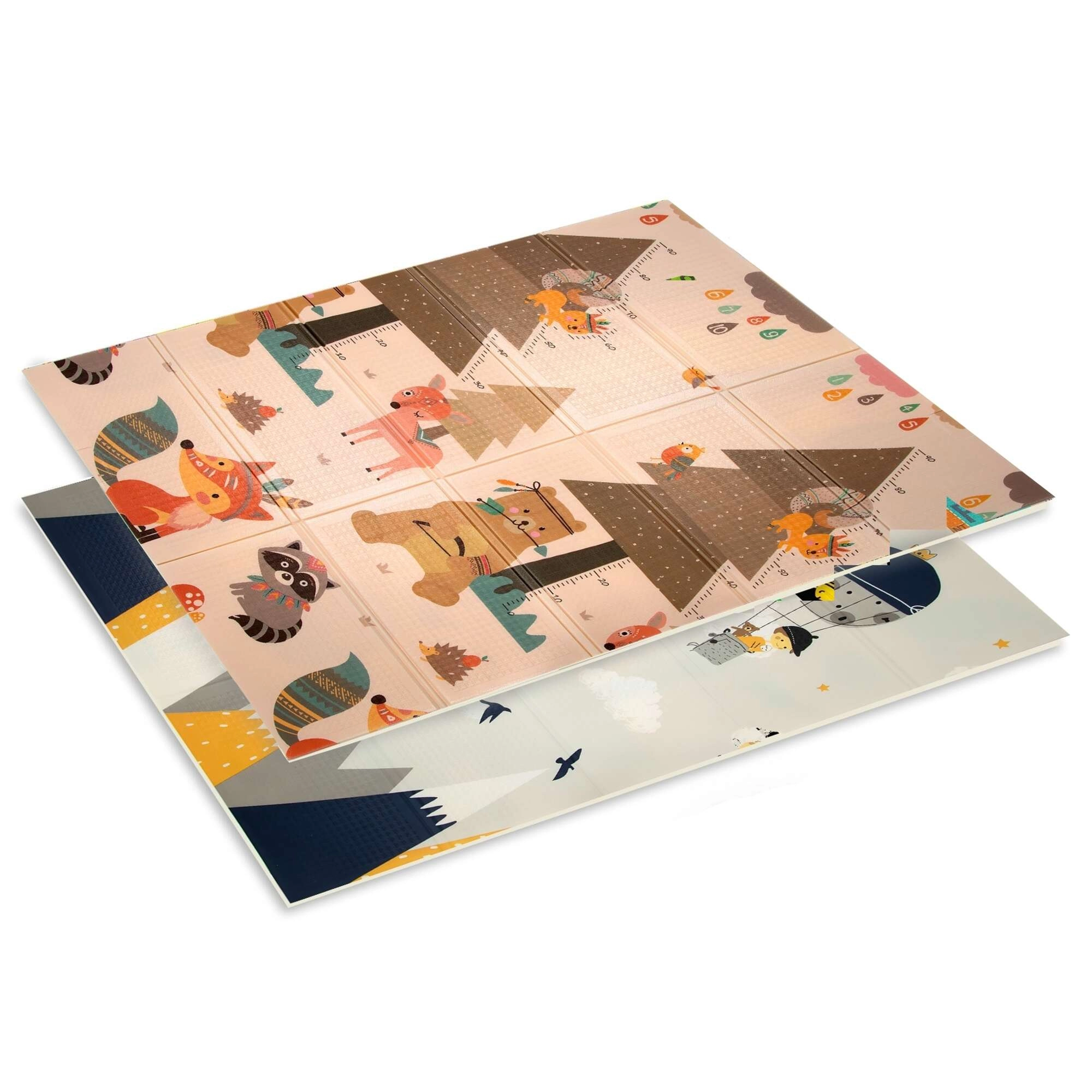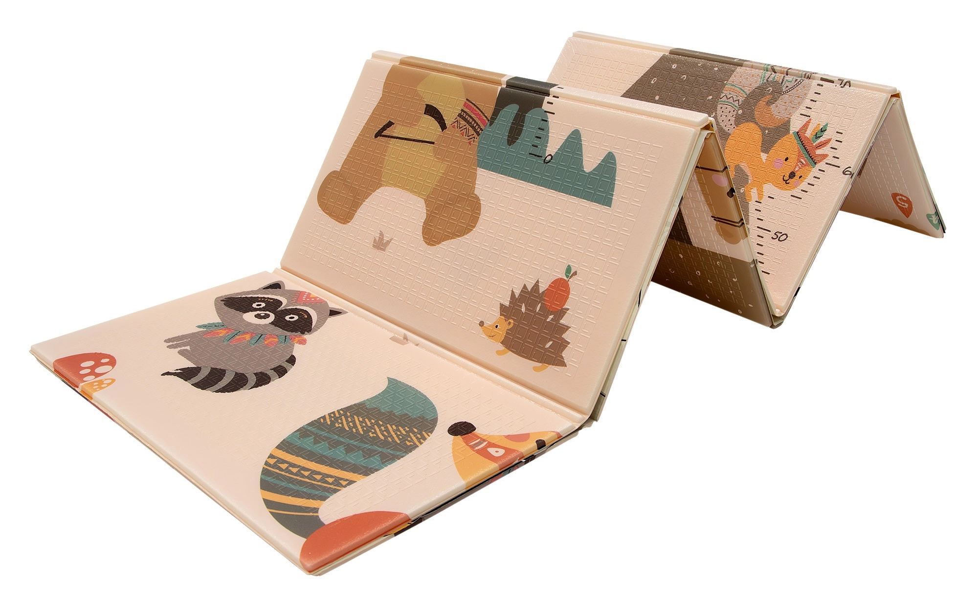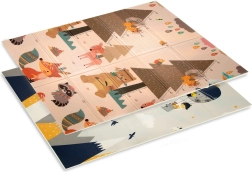 Divas puses ar jautriem motīviem veicina maņu attīstību un rotaļas. Viegli reljefa, neslīdoša virsma atbalsta drošu rāpošanu un pirmos soļus.