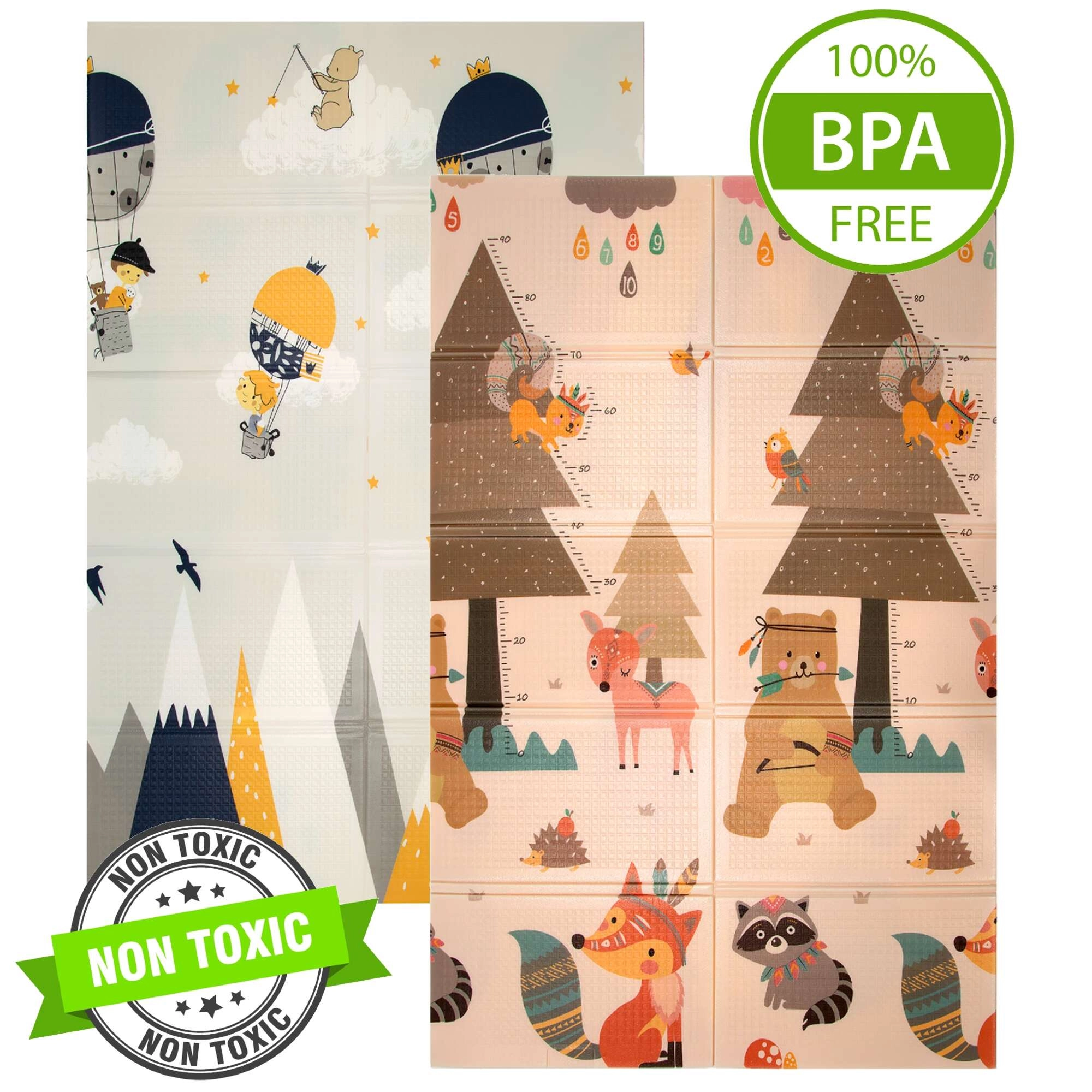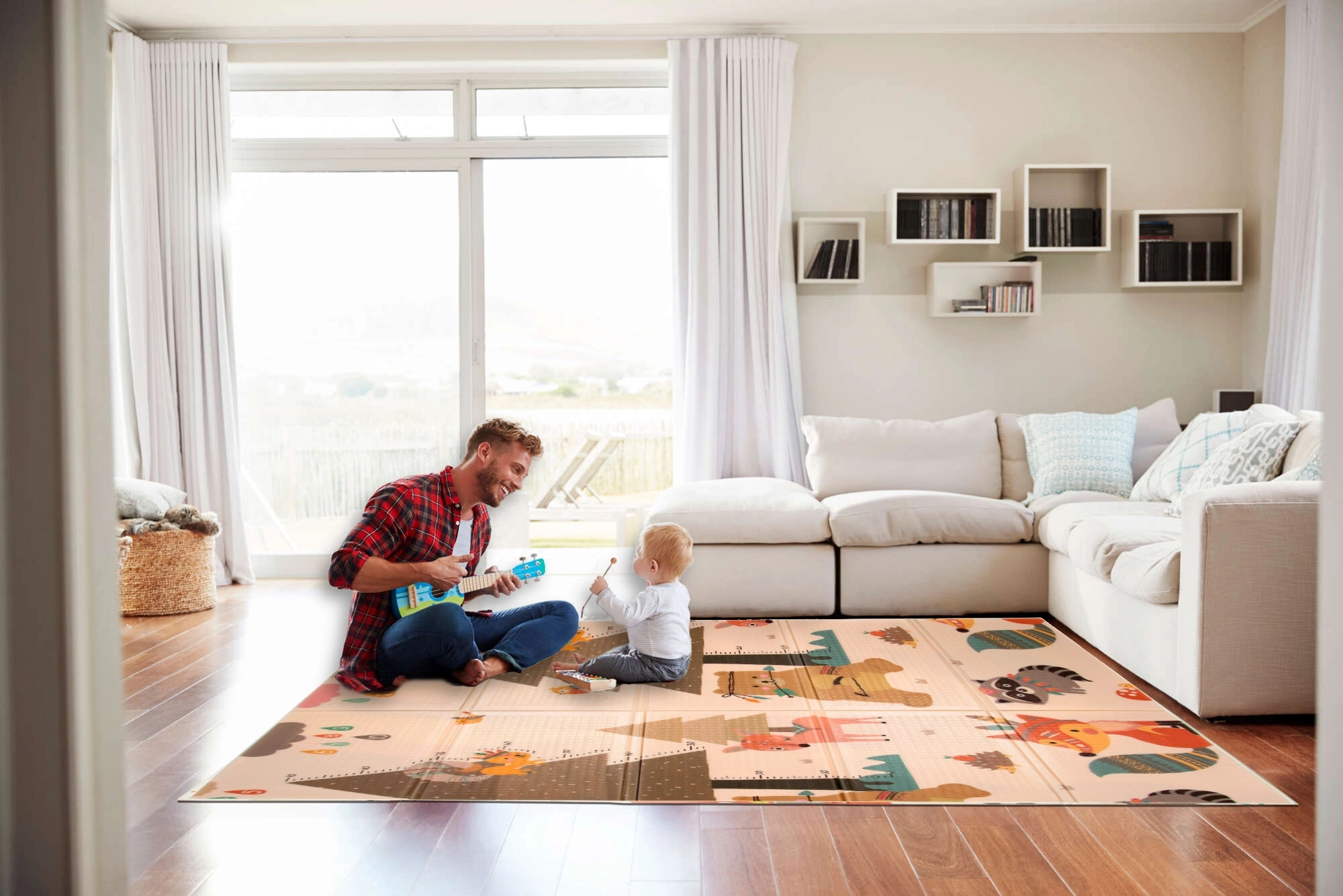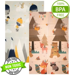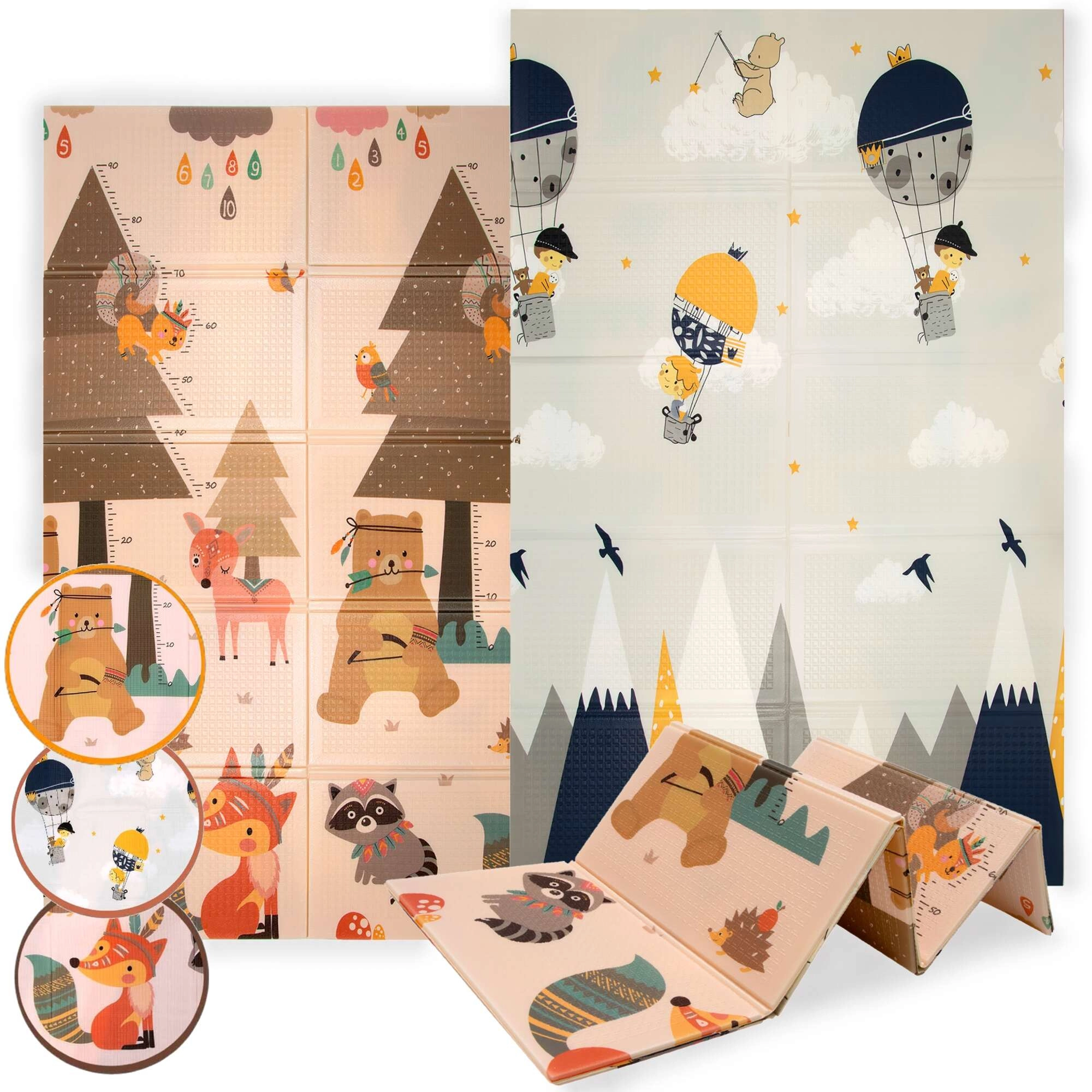 Divas puses ar jautriem motīviem veicina maņu attīstību un rotaļas. Viegli reljefa, neslīdoša virsma atbalsta drošu rāpošanu un pirmos soļus.