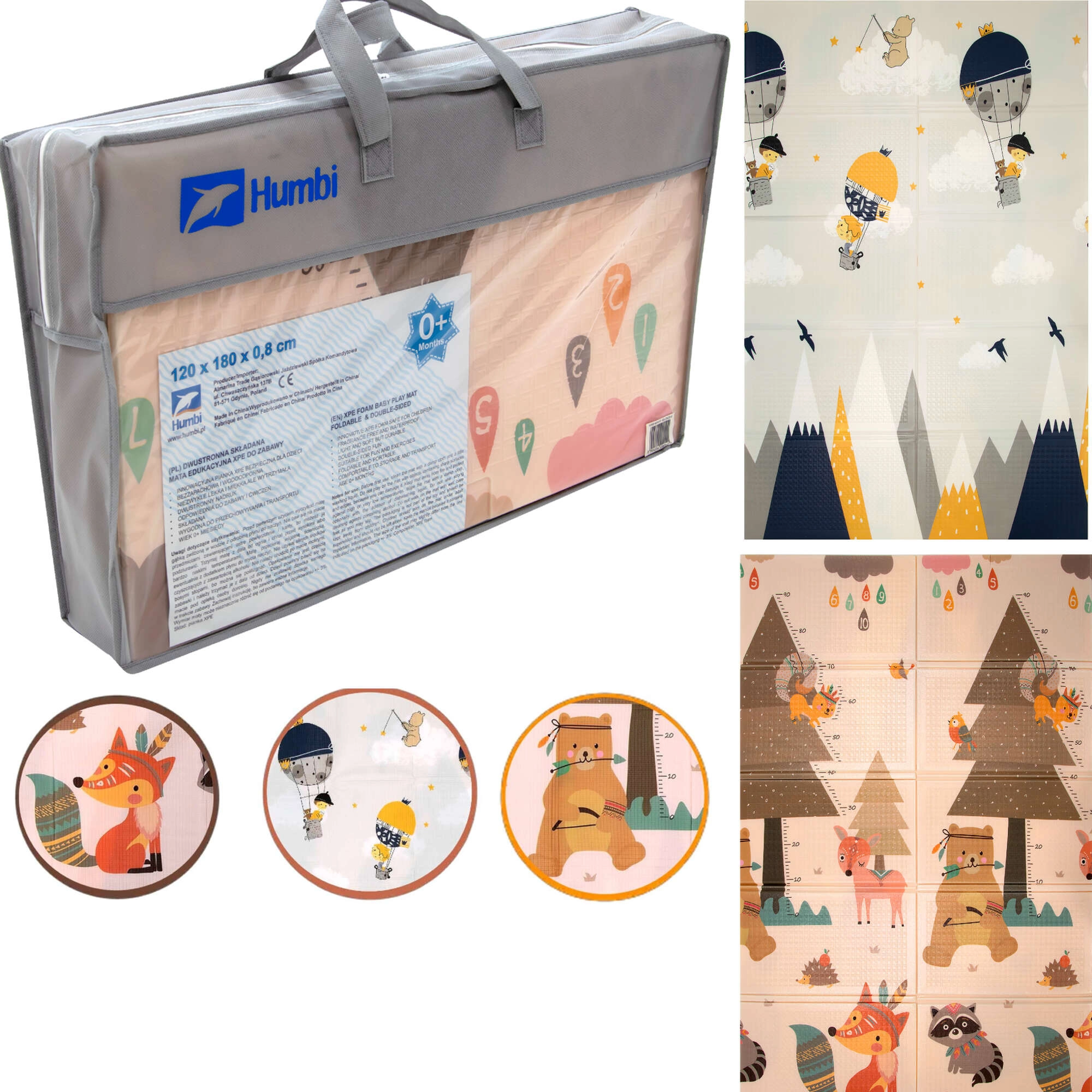 HUMBI paklājs no augstvērtīgām XPE putām piedāvā lielisku amortizāciju, siltuma izolāciju no aukstas grīdas un neslīdošu, viegli reljefainu virsmu drošai rāpošanai un pirmajiem soļiem. Tas ir divpusējs – vienā pusē mīlīgi meža radību motīvi, otrā – kalni un piedzīvojumi –, tāpēc varat viegli saskaņot izskatu ar interjeru un bērna noskaņojumu.