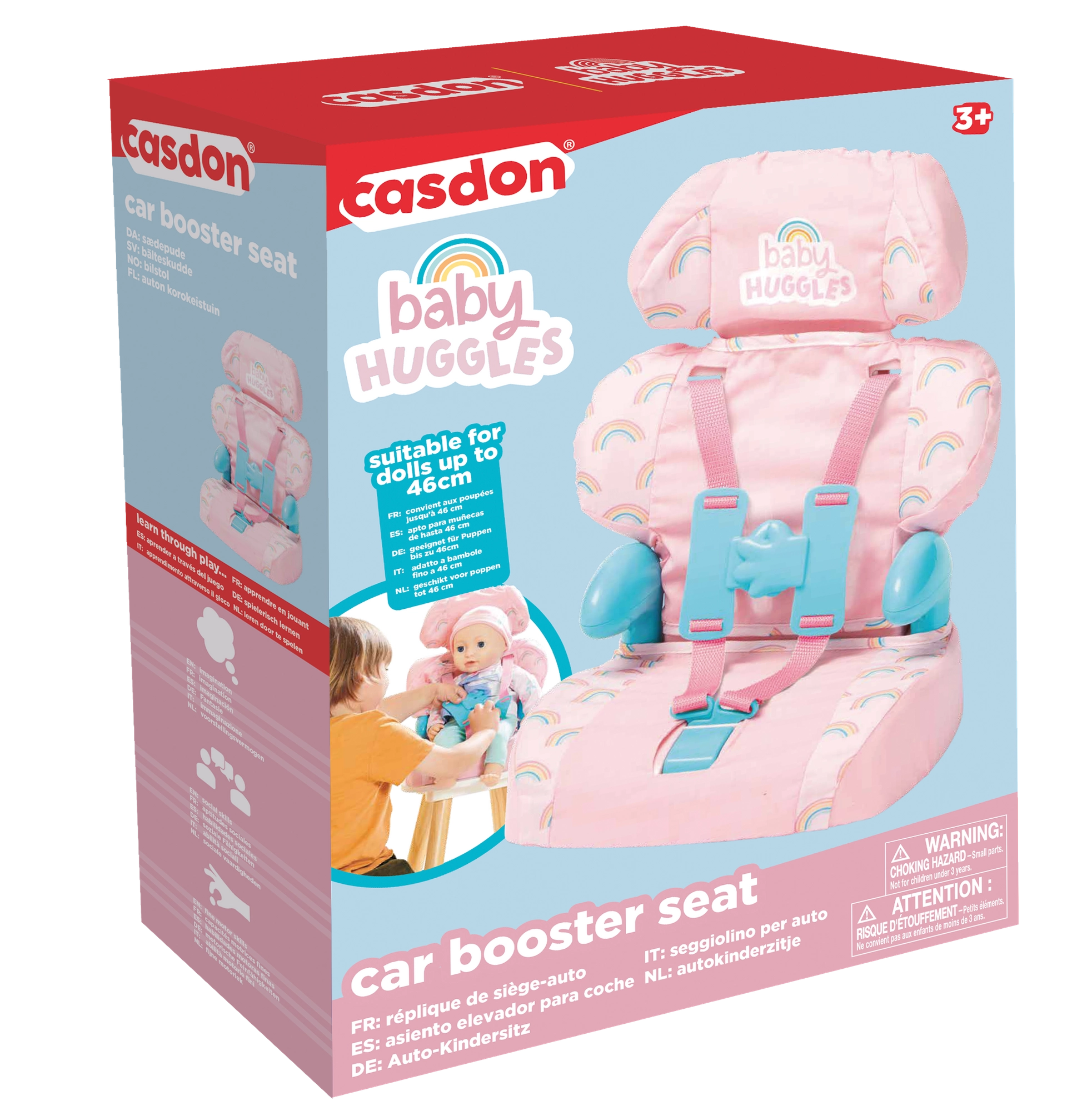 Stilīgs leļļu autokrēsliņš CASDON BABY HUGGLES ir ideāls reālistiskām vecāku lomspēlēm. Tas piedāvā drošības jostas, vieglu un stabilu konstrukciju un mīkstu polsterējumu mīlīgā varavīksnes dizainā. Piemērots lellēm līdz 46 cm, lieliski der ceļošanai, barošanai un ikdienas rūpēm.