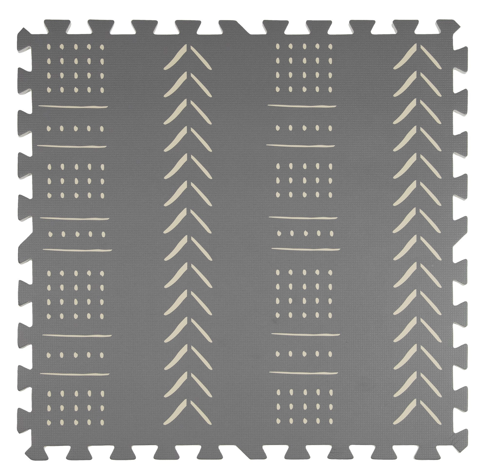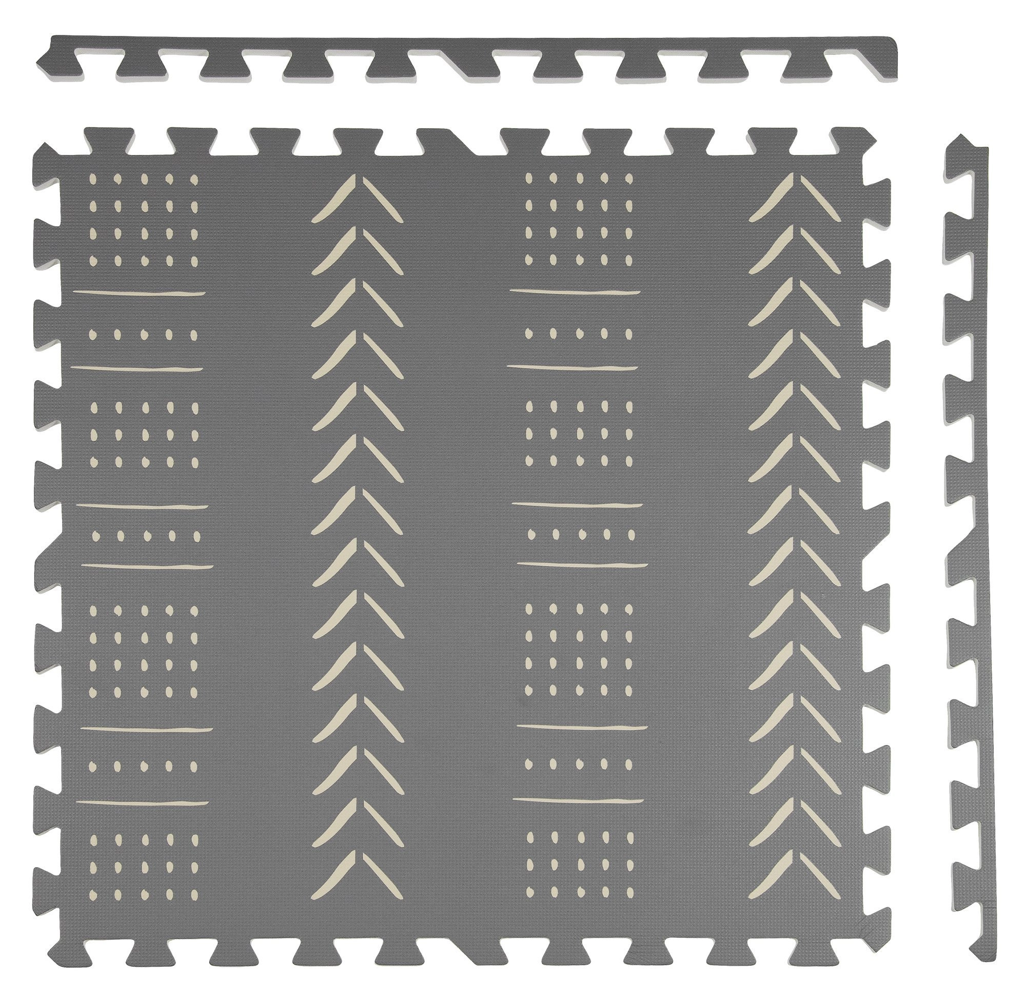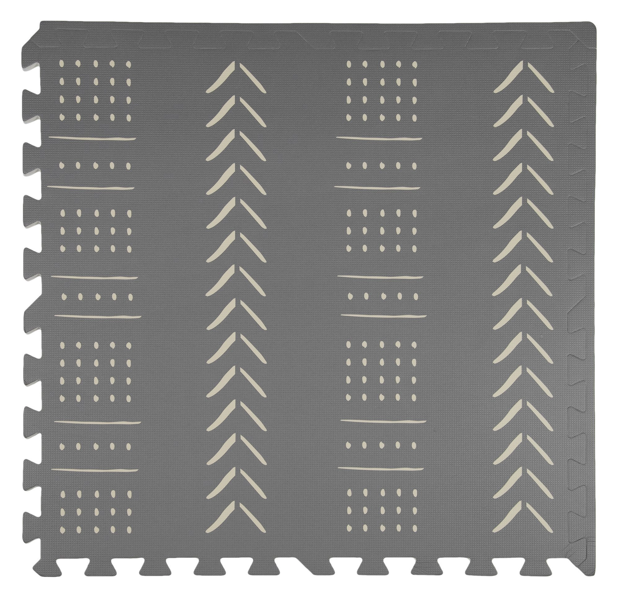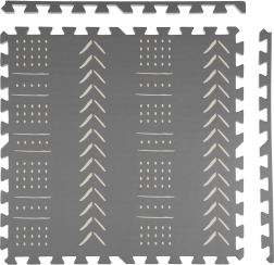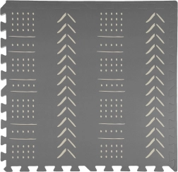 Putu puzles paklājiņš Humbi elegantā pelēkā krāsā ar ģeometrisku rakstu izveidos mīkstu, drošu un klusu zonu rotaļām, rāpošanai un atpūtai. Gabali saliekami kā puzle, tāpēc viegli pielāgosiet izmēru un formu. Paklājiņš pasargā no grīdas aukstuma, absorbē triecienus un troksni, un, pateicoties ūdensizturīgajai virsmai, to ir vienkārši uzturēt tīru.