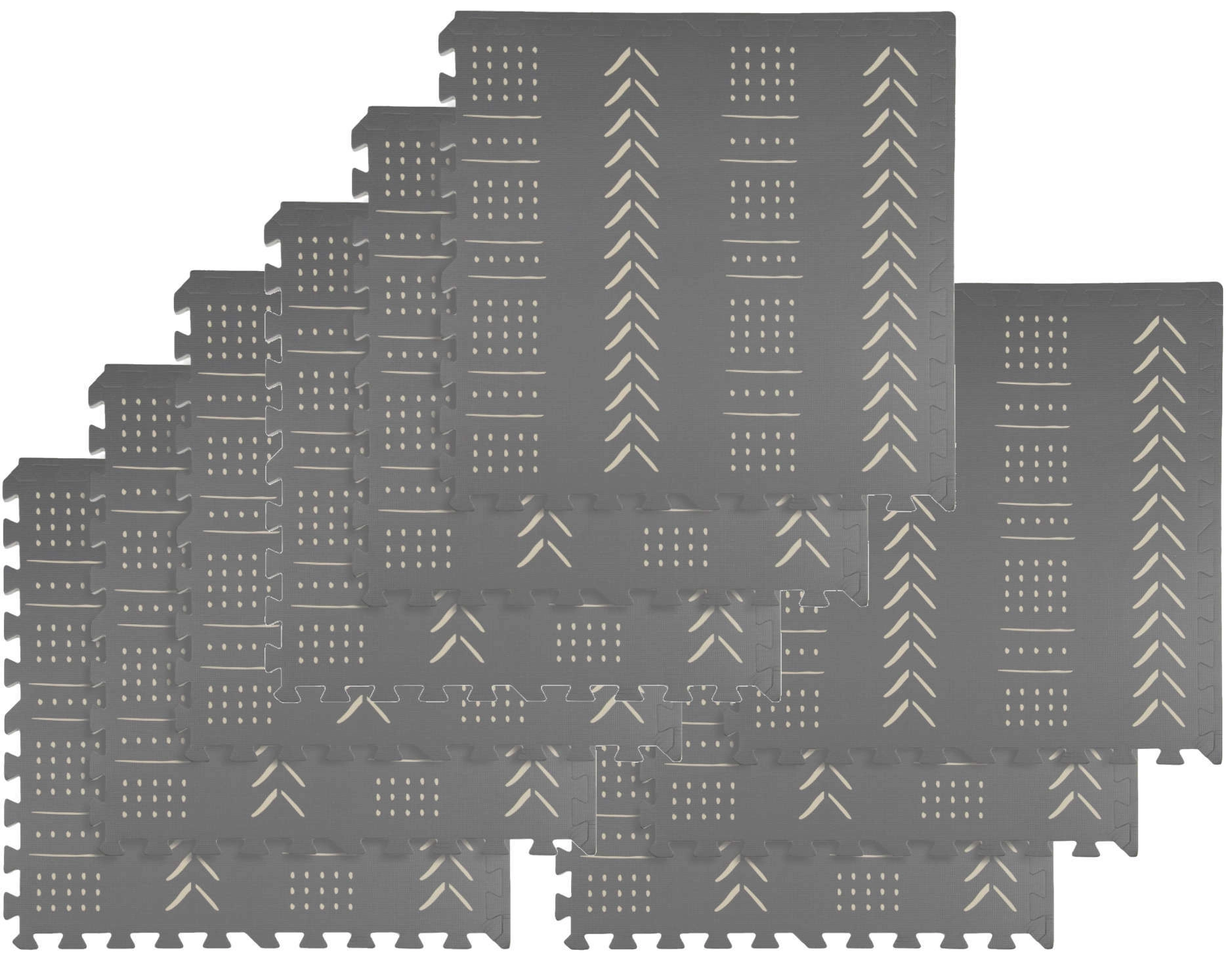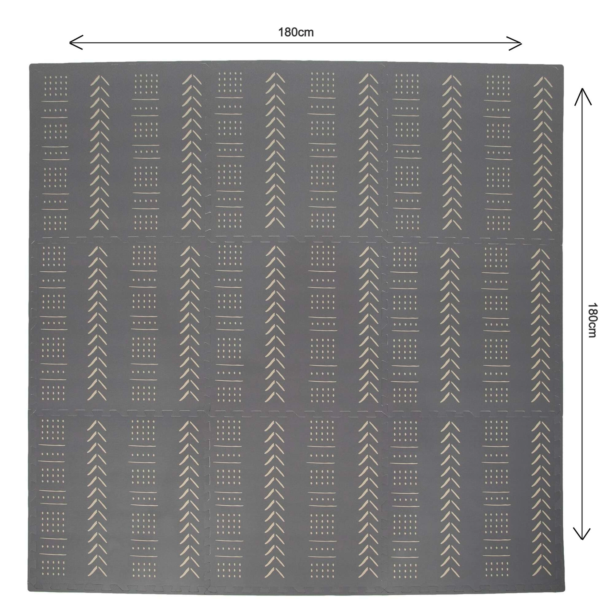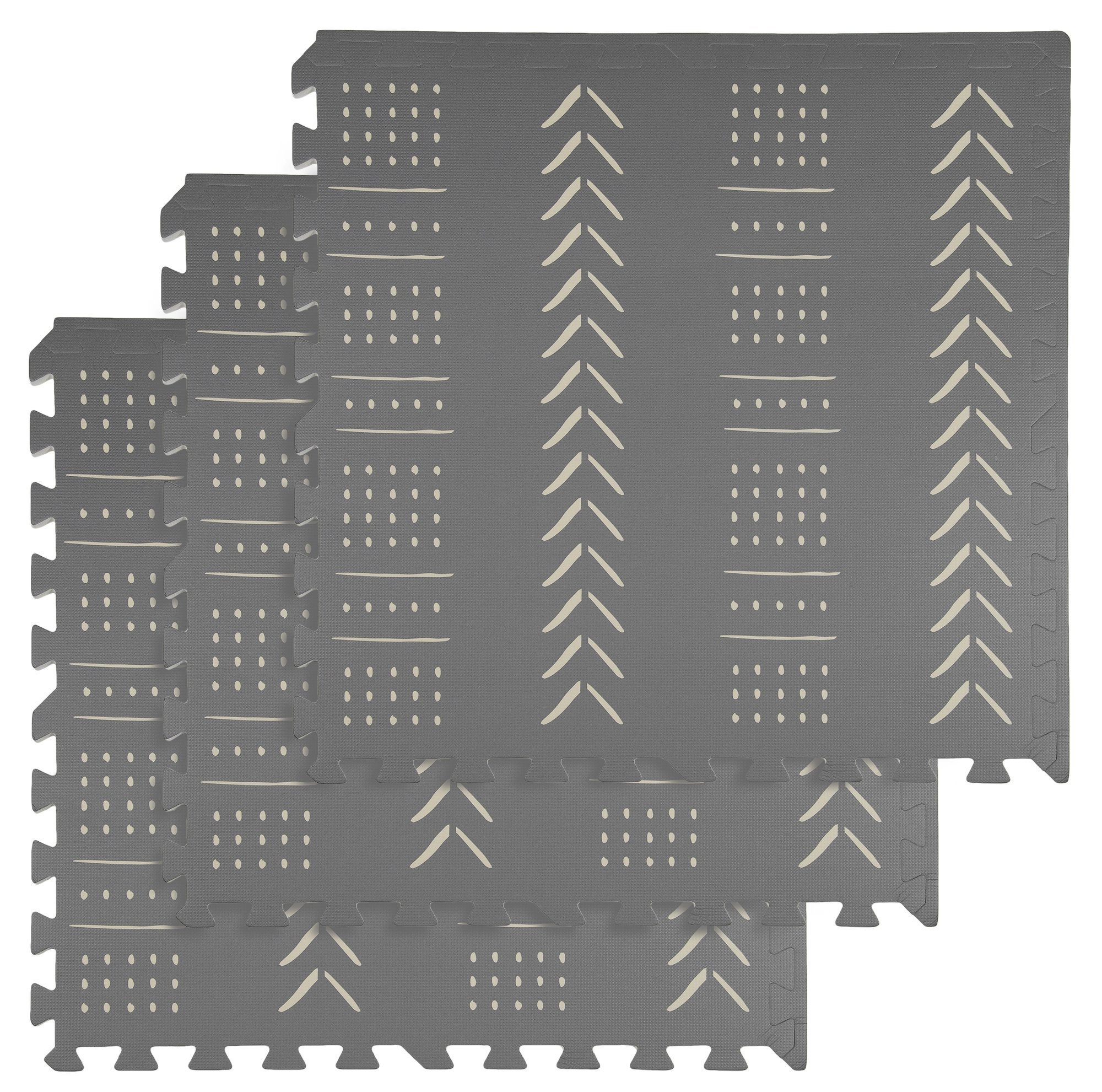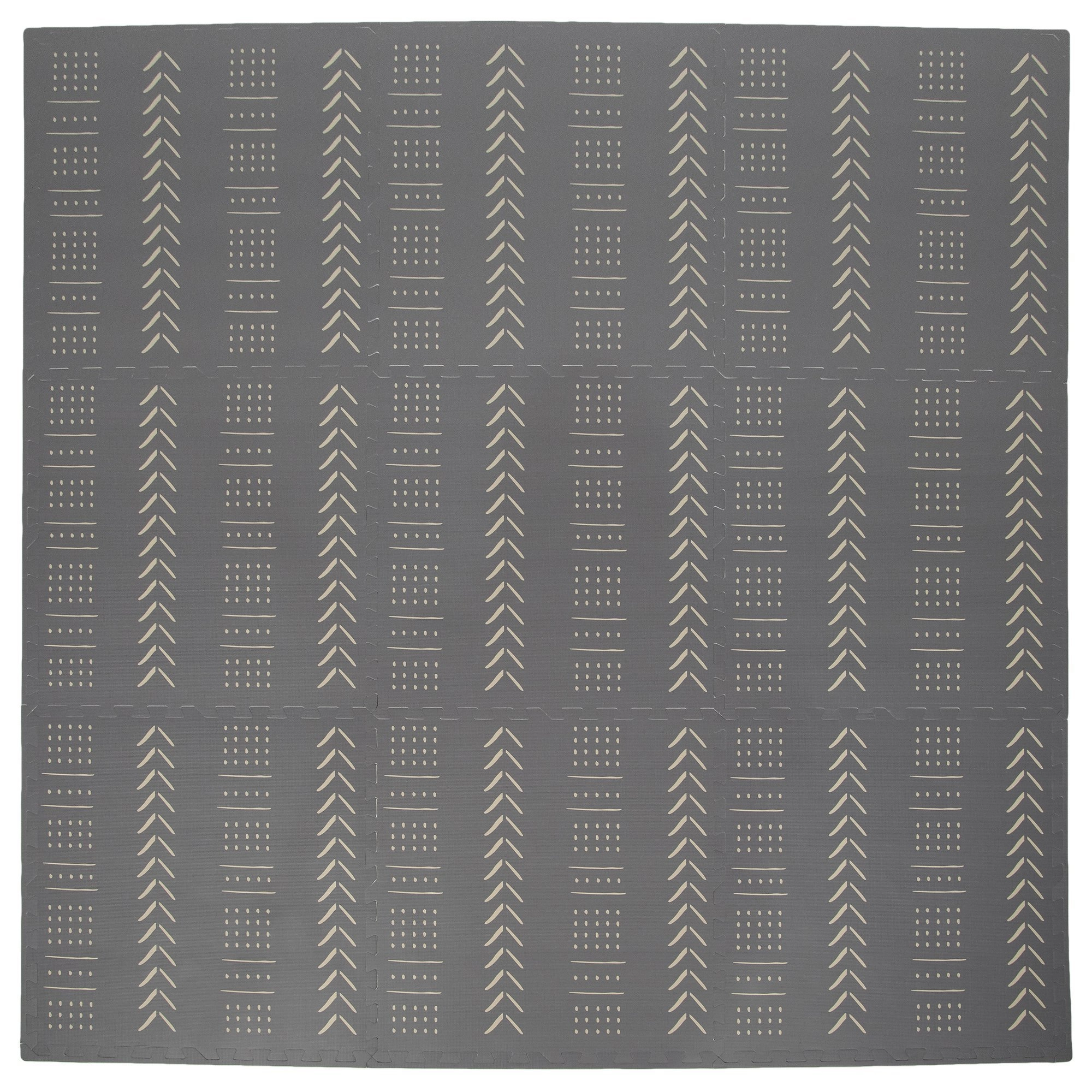 Putu puzles paklājiņš Humbi elegantā pelēkā krāsā ar ģeometrisku rakstu izveidos mīkstu, drošu un klusu zonu rotaļām, rāpošanai un atpūtai. Gabali saliekami kā puzle, tāpēc viegli pielāgosiet izmēru un formu. Paklājiņš pasargā no grīdas aukstuma, absorbē triecienus un troksni, un, pateicoties ūdensizturīgajai virsmai, to ir vienkārši uzturēt tīru.