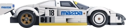 Uzticamas leģendārā MAZDA 787B detaļas baltā krāsā ar zili–dzelteniem uzlīmju elementiem un izteiktu aizmugurējo spārnu iepriecinās ikvienu autosporta fanātu.