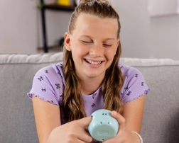 Punirunes apvieno rūpes par digitālo mīluli ar unikālu taustes pieredzi. Ievietojiet pirkstu kapsulā, atrodiet mīksto pieskāriena pogu un vērojiet, kā jūsu kustības atspoguļojas krāsainajā LED displejā – it kā jūs tiešām pieskartos savam mīlulim. Pateicoties kompaktajam dizainam, rotaļlietu varat ņemt līdzi jebkur.
