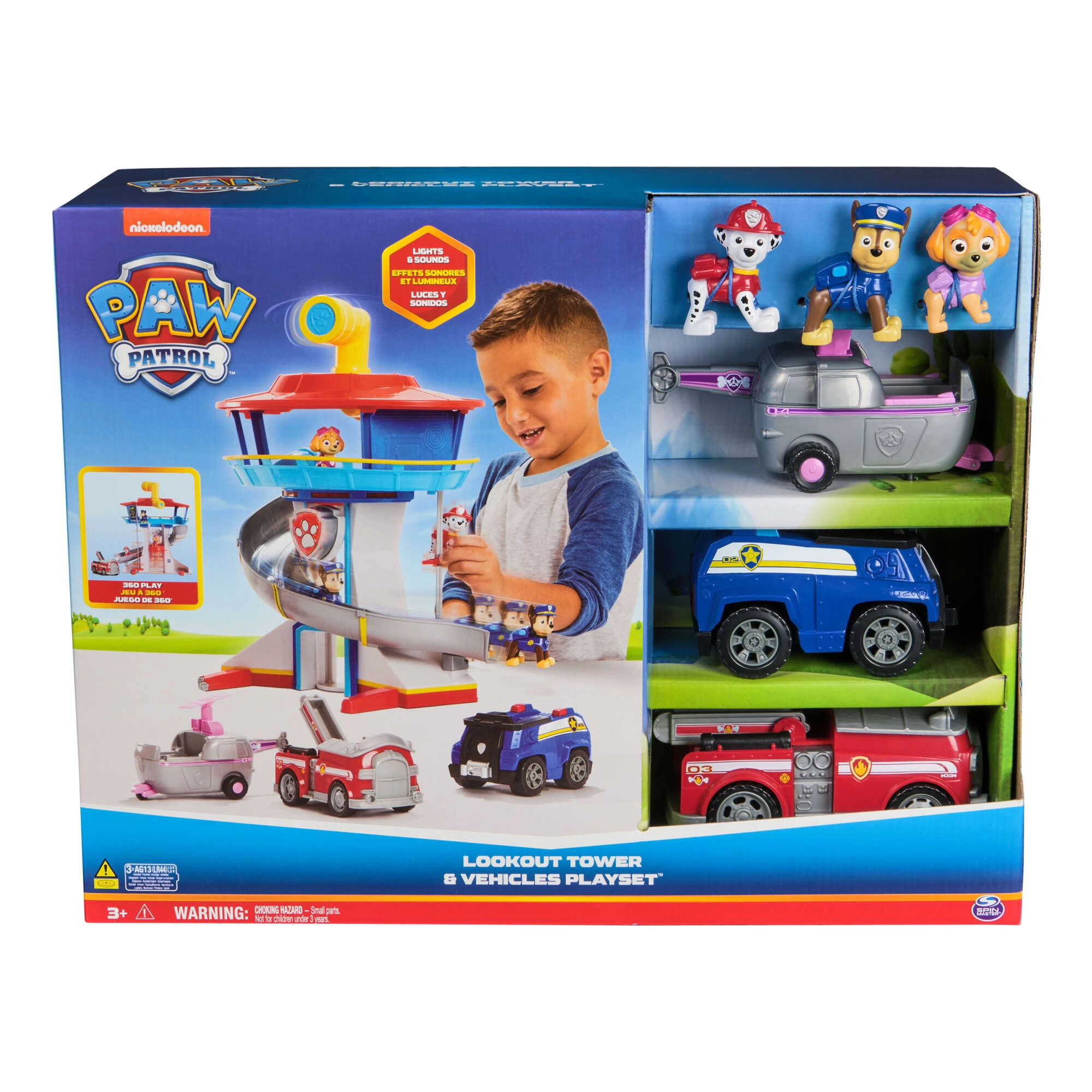 Izbaudi seriāla cienīgu darbību ar PAW Patrol spēļu komplektu – iespaidīgu 43 cm augstu skatu torni ar ātrās nobraukšanas rampu un interaktīviem efektiem. Iepakojumā ir 3 figūriņas (Chase, Marshall, Skye) un viņu transportlīdzekļi tūlītējām misijām. Gaismas un skaņas efekti, lifts līdz torņa virsotnei un spirālveida rampa pārvērš katru dienu glābēju piedzīvojumā.