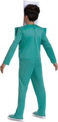 Komplektā ir kastes tipa ķivere/maska, kas pilnveido Stīva tēla izskatu. Kombinezonam ar garām piedurknēm un bikšu starām ir polsterēti plecu paneļi un iespaidīgas piksveida detaļas maksimālam efektam jebkurā ballītē.