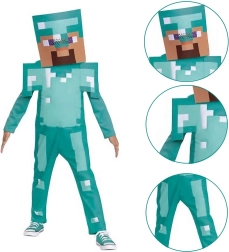 Šis licencētais kostīms no iemīļotās spēles Minecraft piedāvā autentiskas turkīzzilas dimanta bruņas ar raksturīgu piksveida apdruku. Viegls un patīkams materiāls nodrošina komfortu visas dienas garumā un brīvu kustību spēlējot vai dejojot.