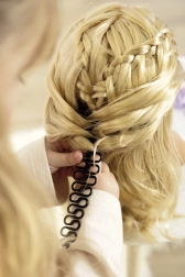 Suka, ķemme, gumijas, sprādzes, kniedītes, caurspīdīgas gumijas un speciāli rīki pīšanai ērtai frizūru veidošanai.