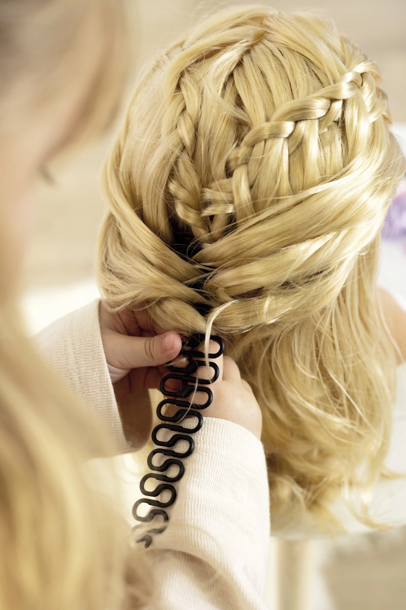- 19 piederumi iepakojumā – suka, ķemme, gumijas, sprādzes, kniedītes, rīki bizēm un citi.