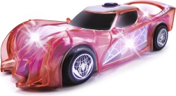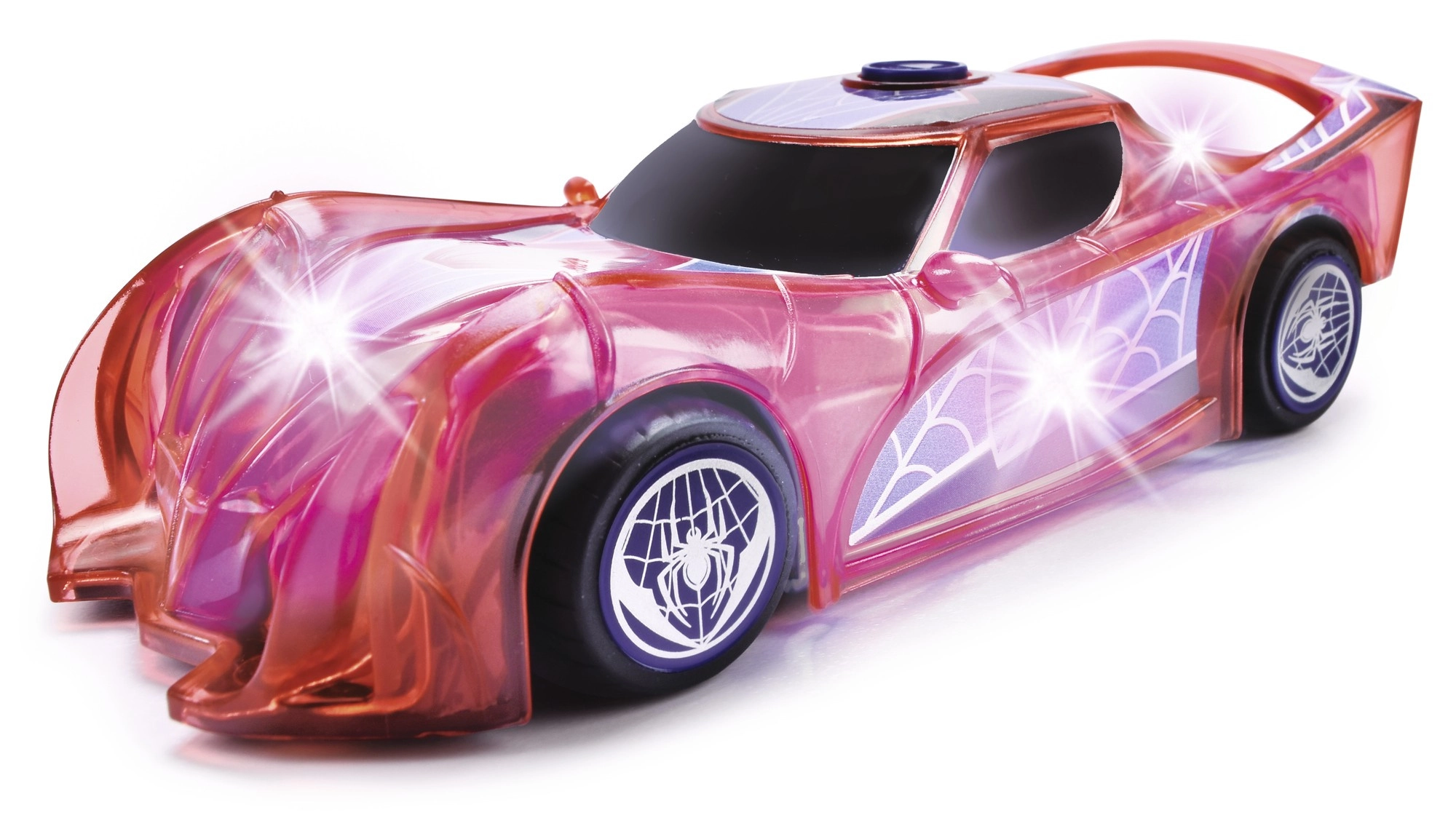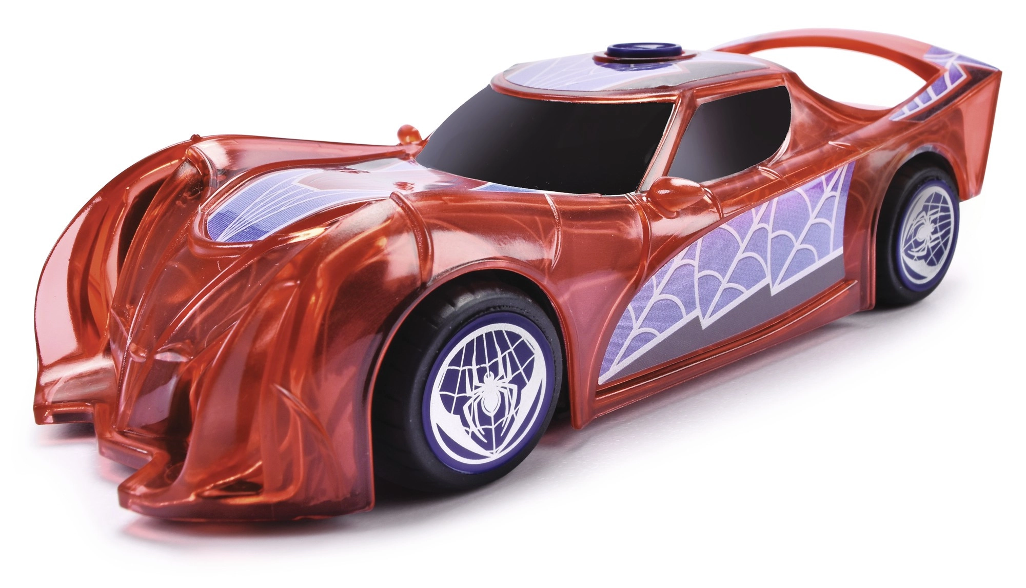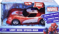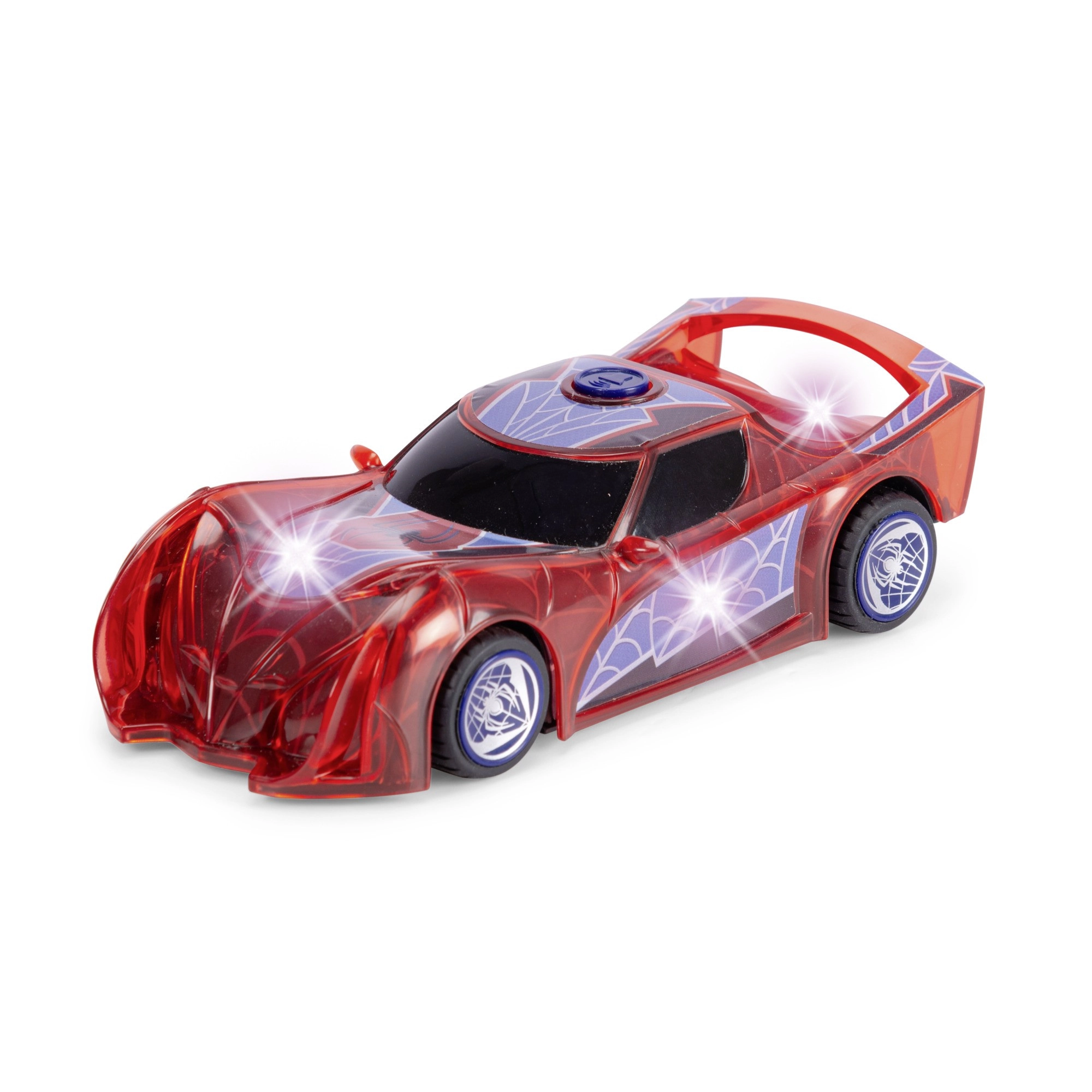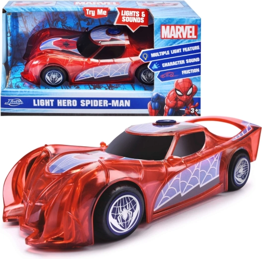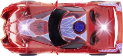 Supervaroņa SPIDER‑MAN automašīna raksturīgajā sarkanajā krāsā ar zirnekļtīkla detaļām izceļas ar caurspīdīgu dizainu un iebūvētām LED gaismām, kas izgaismo jebkuru piedzīvojumu. Vienkāršais push‑and‑go mehānisms (frikcijas piedziņa) – pietiek ar vieglu grūdienu, un auto traucas uz priekšu.