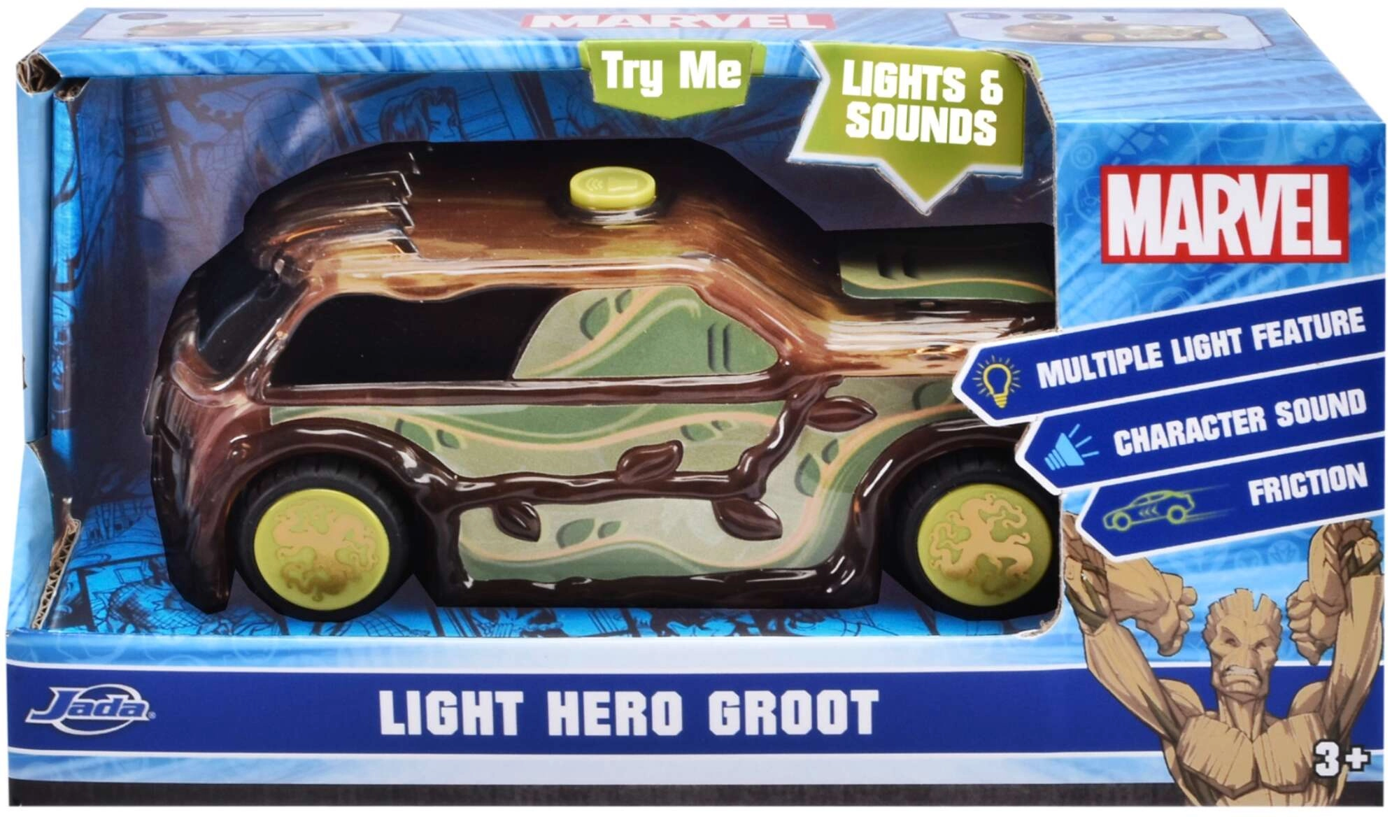 Izklaidējoša mašīnīte, kas iedvesmota no GROOT varoņa no MARVEL pasaules, sajūsminās bērnus ar gaismas un skaņas efektiem. Nospiežot dzelteno pogu uz jumta, ieslēdzas gaismas un GROOT un auto skaņas. Stilīgs “koka” izskats ar lapām un zariņiem, braukšana pēc grūdiena un kvalitatīvs izpildījums padara šo rotaļlietu par lielisku dāvanu mazajiem supervaroņiem.