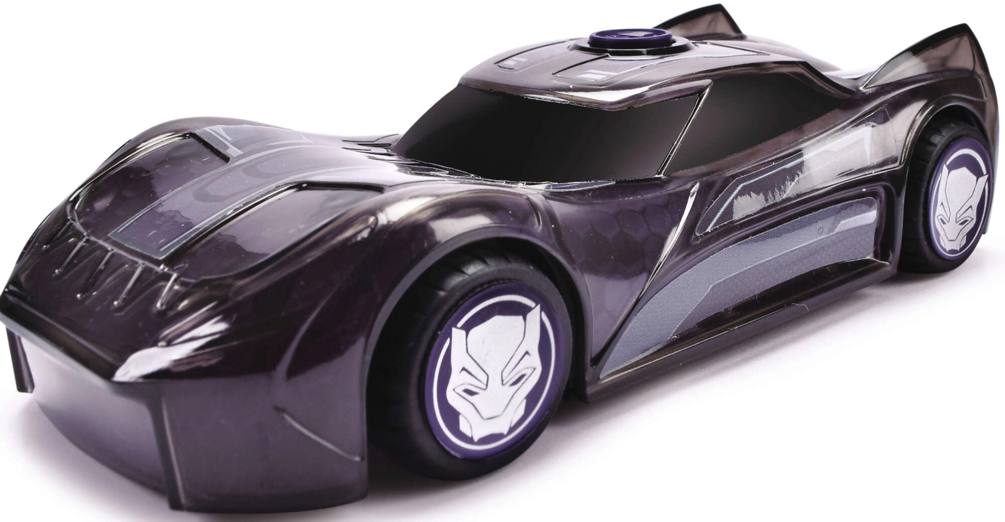 Dodies aizraujošā braucienā ar MARVEL Black Panther autiņu. Virsbūve ar maskas motīviem un futūristiskām līnijām lieliski ataino iemīļotā varoņa stilu. Nospiežot violeto pogu, ieslēdzas gaismu mirdzums pa visu virsbūvi un autentiskas skaņas – gan auto, gan personāža – vēl spēcīgākam spēles piedzīvojumam.