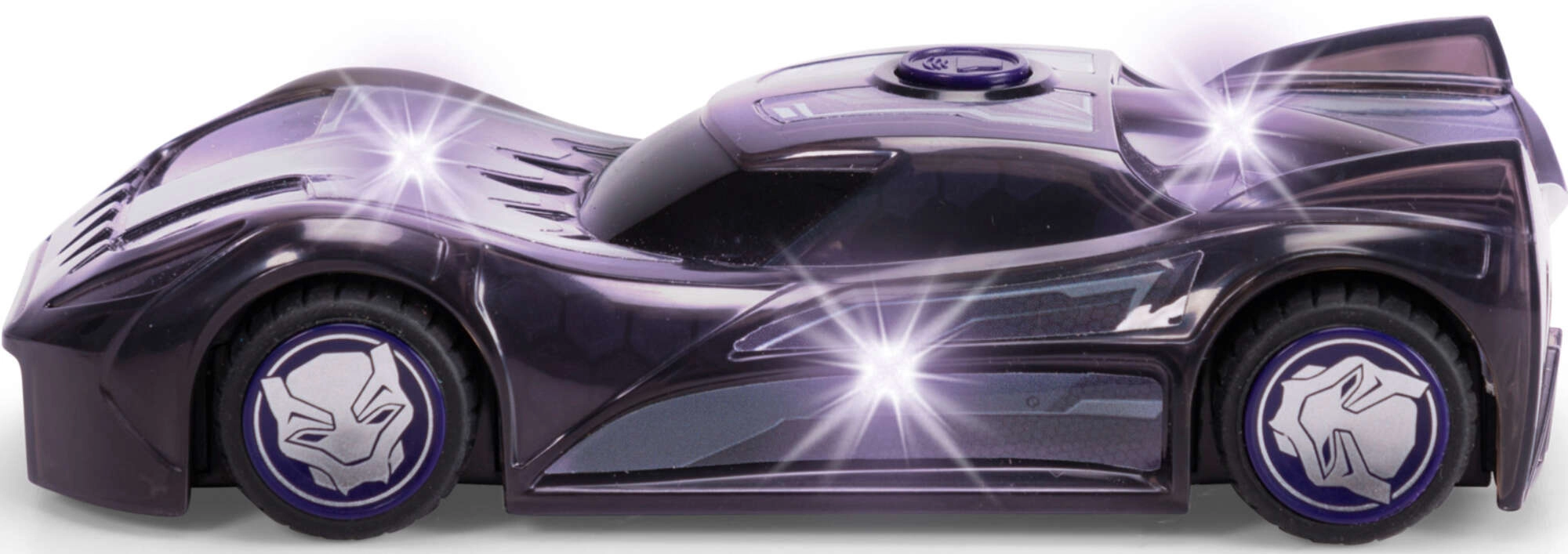 Spilgti LED efekti izgaismo autiņu un izceļ supervaroņa BLACK PANTHER tēlu – ideāli vakara rotaļām un dinamiskām ainām.
