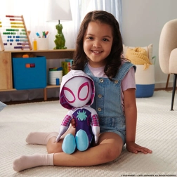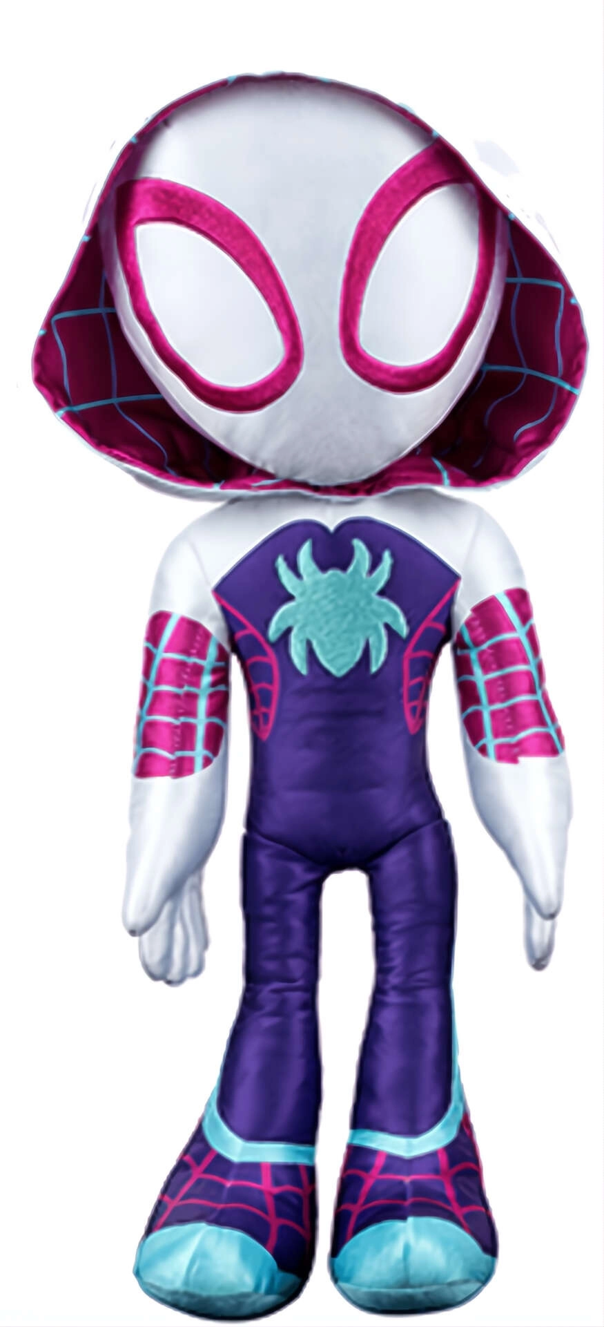 Iemīļotā varone Ghost-Spider (Gvena Steisija) pieejama mīkstā plīša rotaļlietas veidā no sērijas Spidey un viņa apbrīnojamie draugi. Pateicoties kvalitatīvam izpildījumam ar izšūtu sejas detaļu apdari un raksturīgam baltam tērpam ar rozā–zilām akcentēm, viņa ir viegli atpazīstama un gatava ikdienas rotaļām un mīļošanai.
