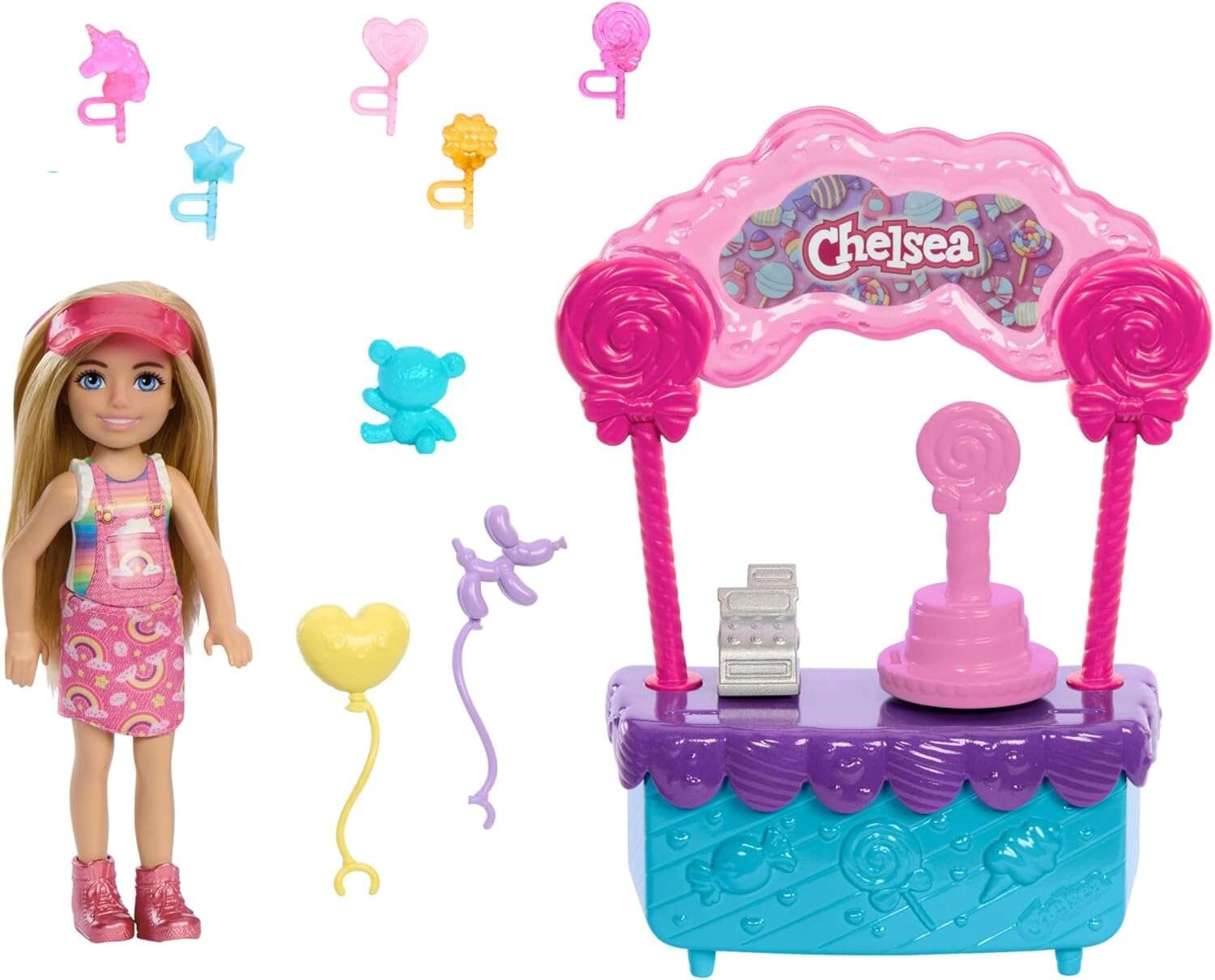 Šis mīlīgais komplekts no Mattel iemīļotās sērijas Barbie Club Chelsea rosina iztēli un sīko motoriku. Bērni var spēlēt pārdevēju, dekorēt leti, izvēlēties no ledenīšu piederumiem un izdomāt savus stāstus saldumu kioskā.